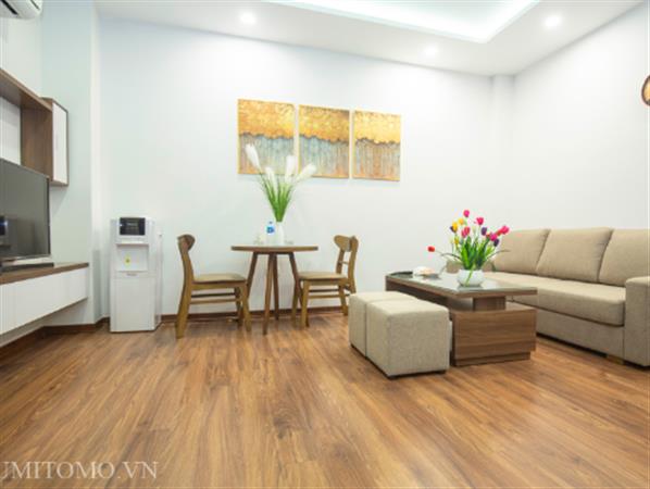 Serviced apartment 1 for rent with area of 50m2, wide, staircase, cheap price, convenient for guests to work in Hanoi. Right near Daewoo, lotte, full service and interior. Guests just carry suitcases to stay
