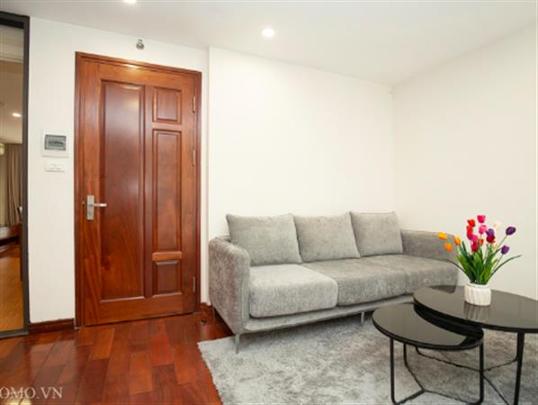This is studio apartment which has just available for rent on Dao Tan street. The property is located on the fifth level of the building that benefit elevator, 1 bedroom with bathtub en-suite, hard wooden flooring.