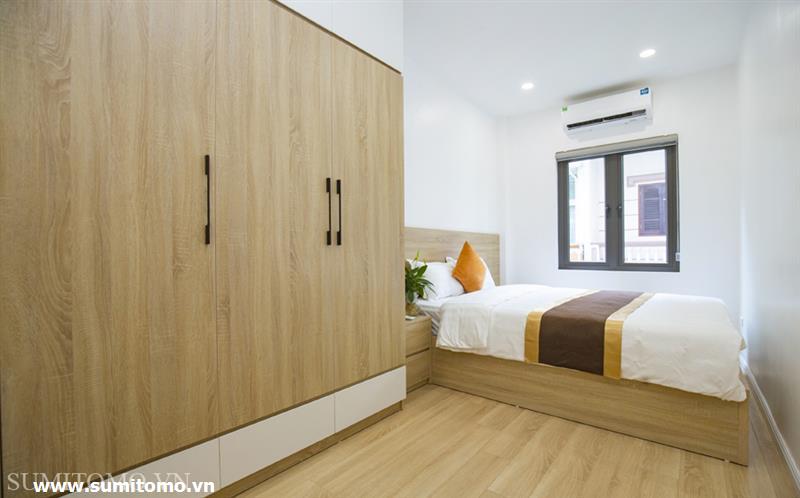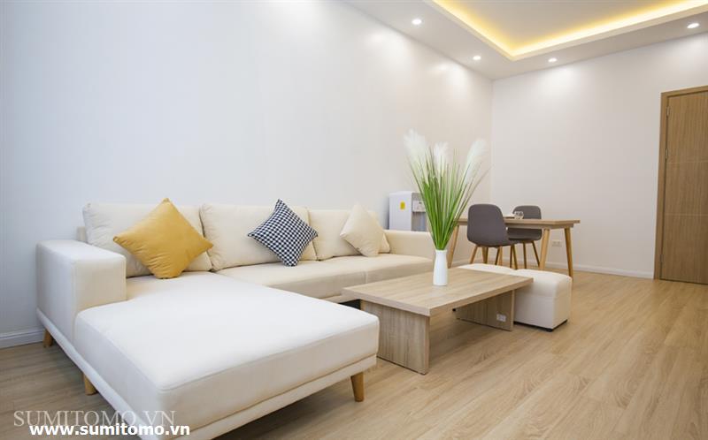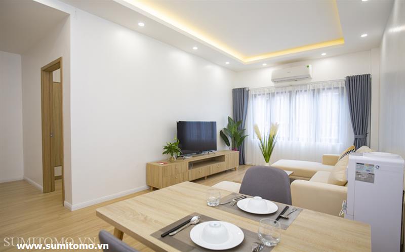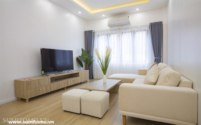 Serviced apartments near Lotte, Daewoo, Ngoc Khanh Lake, Thu Le Lake for rent on Kim Ma Street include internet, Japanese television, laundry and cleaning five times a week, 24h security, full furniture.