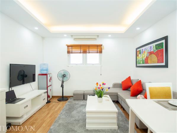 Looking for a ready-to-move-in apartment in central Hanoi? This fully furnished 1-bedroom unit on Dao Tan Street offers modern comfort, convenience, and a prime location in Ba Dinh District. With a usable area of approx. 45 sqm, the apartment includes 1 bedroom, 1 bathroom, a cozy living room, and a well-equipped kitchen. Furniture includes a sofa, bed, wardrobe, dining table, smart TV, fridge, washing machine, air-conditioner, and basic cookware – perfect for expats or working professionals.