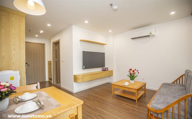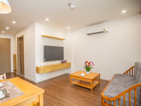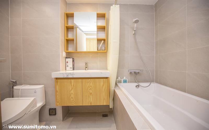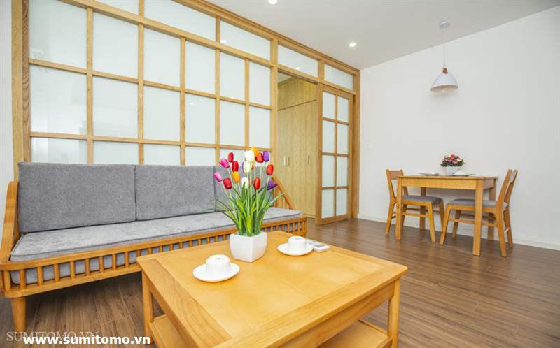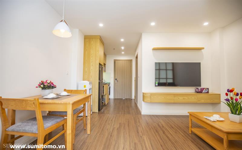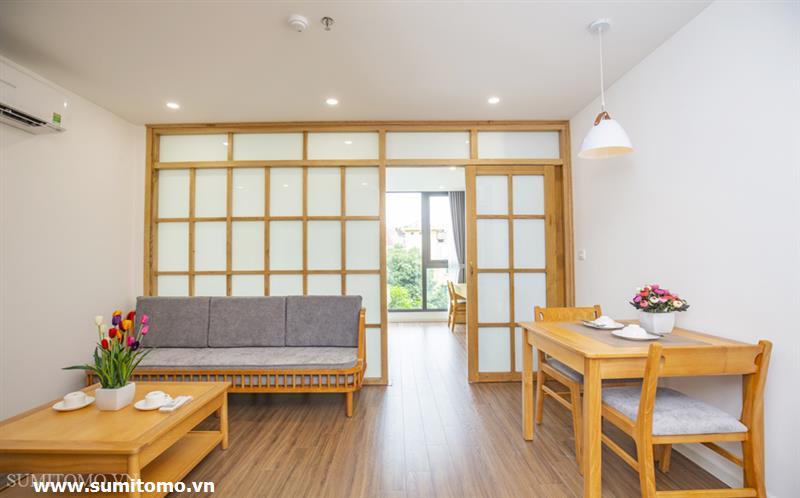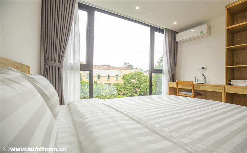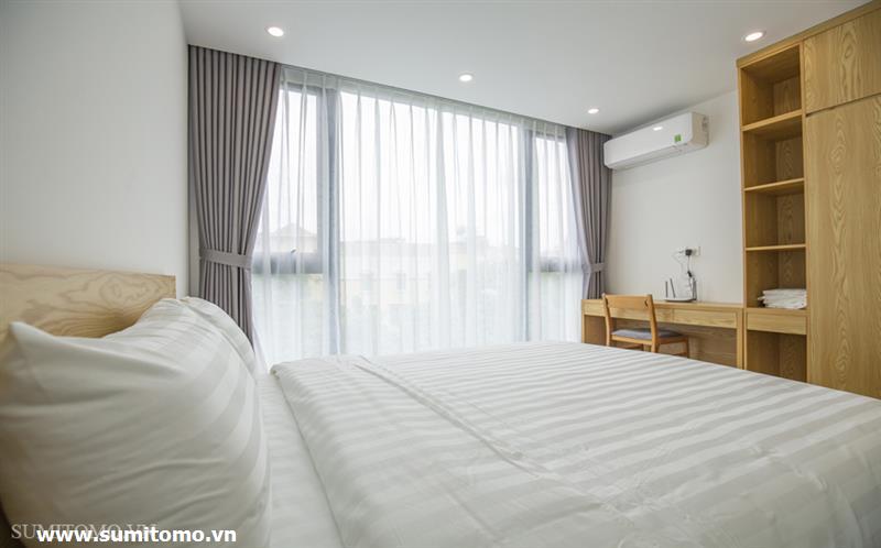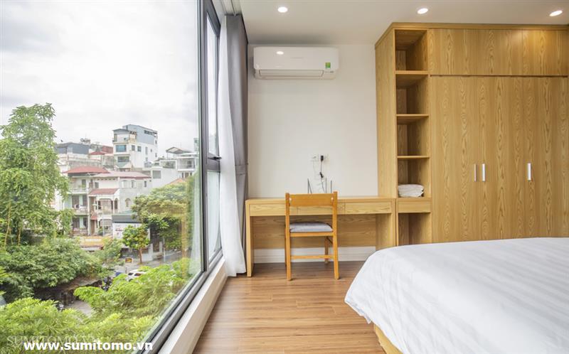 01-bedroom serviced apartment in Phan Ke Binh with new furniture, Japanese style full interior (including internet, Japanese television, cleaning and laundry 3 times a week, 24h security, building technician) with washlet, 80l hot and cold water, washing machine and dryer in the room.