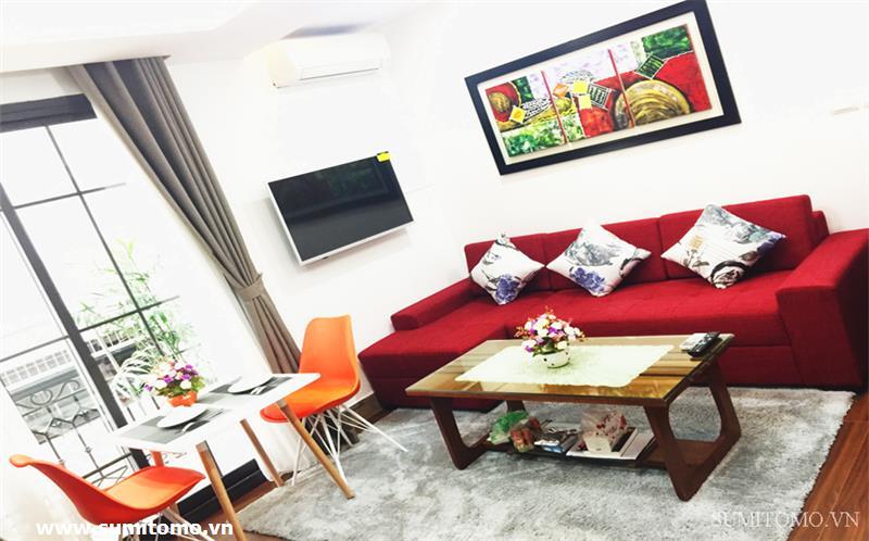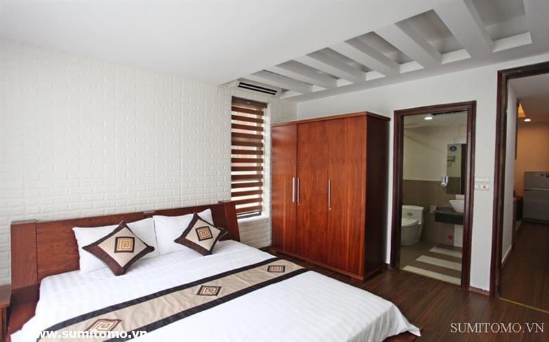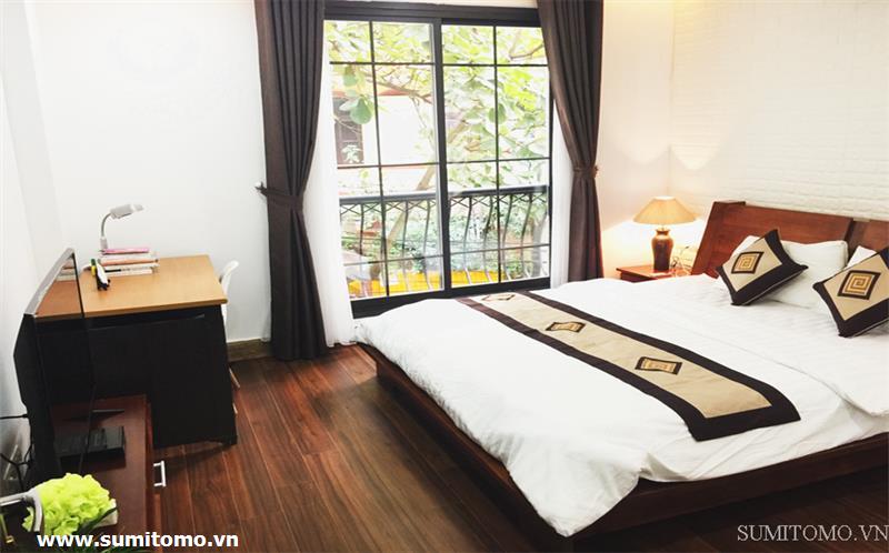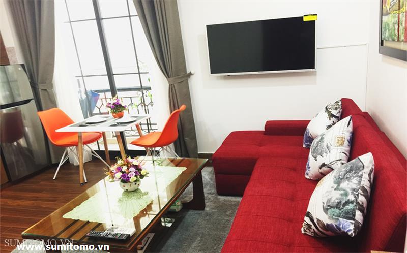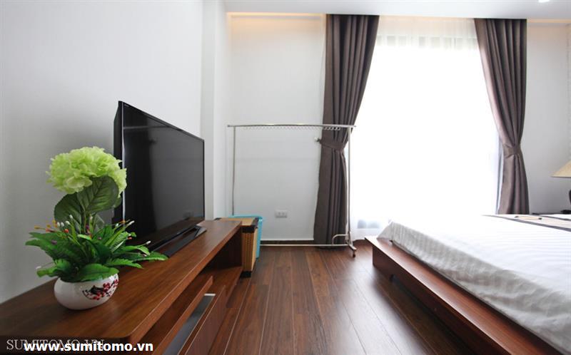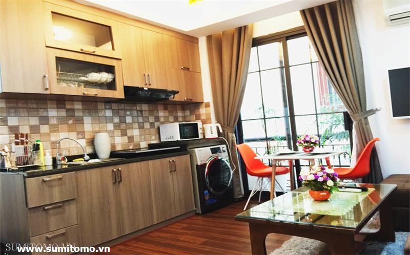 Dao Tan Serviced Apartment for rent for japanese. This apartment is located in quiet lane of Dao Tan street and the taxi can access. The surround area has many Japanese staying and many service for Japanese, it’s near Lotte shopping center, Daewoo Hotel, Australian embassy and Japanese Embassy. It has 1 bedroom, 1 bathroom with bathtub, kitchen, balcony and living-room. It’s also very bright with big windows