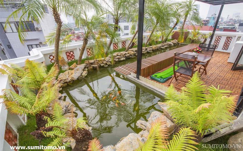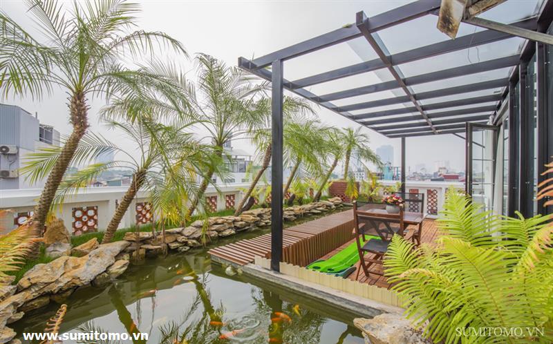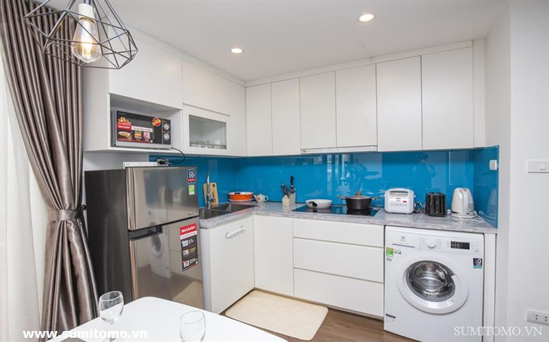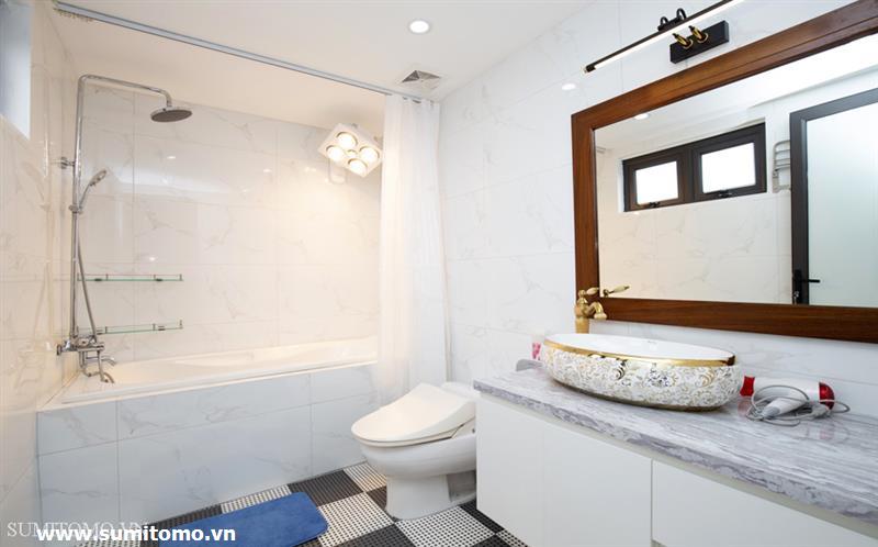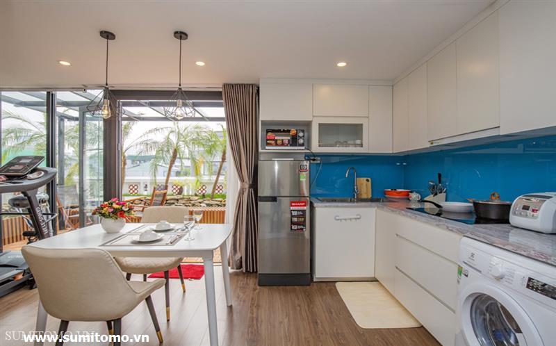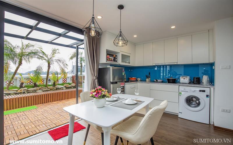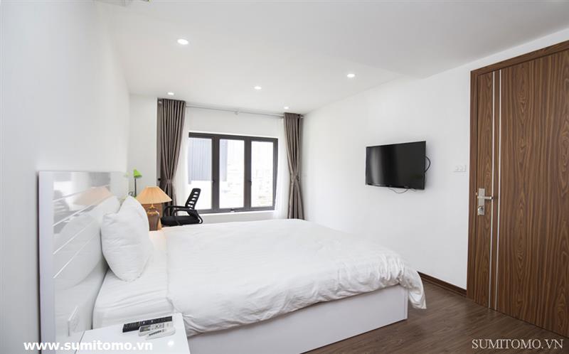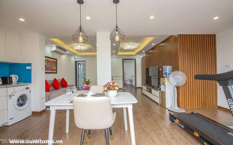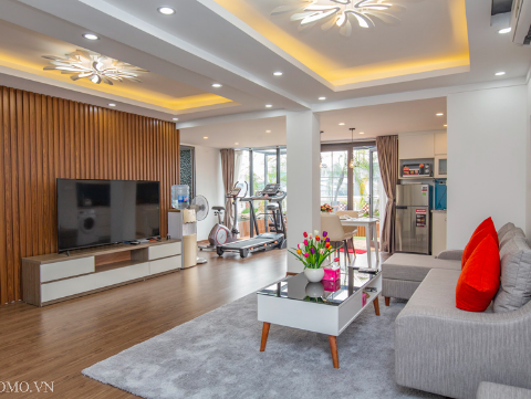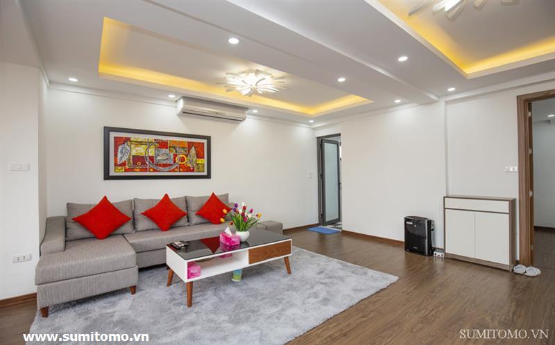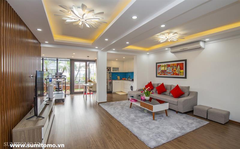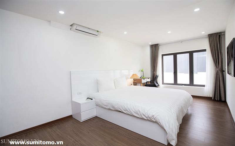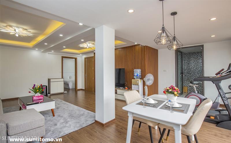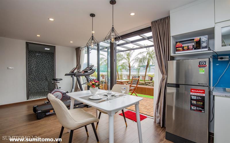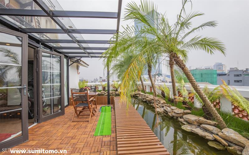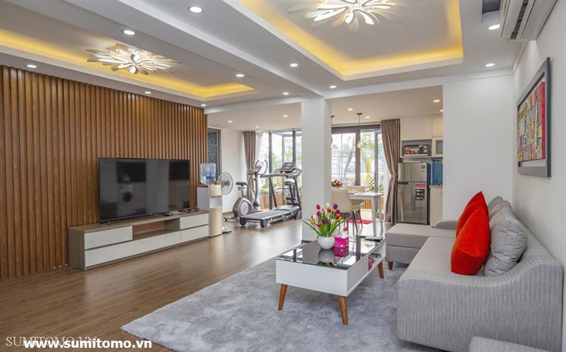 penthouse serviced apartment for long-term rent at building 48/12 Dao Tan (76 Linh Lang) price: 1.300usd/month. Sumitomo building for rent to foreigners with 120sqm2, balcony, 4 open sides, gym, garden and fish tank, new furniture . The apartments are fully equipped and necessary equipment for Japanese : air purifier, wash-let, washing machine án dry, sauna, bathtub. Guests only bring suitcases to stay. Services: