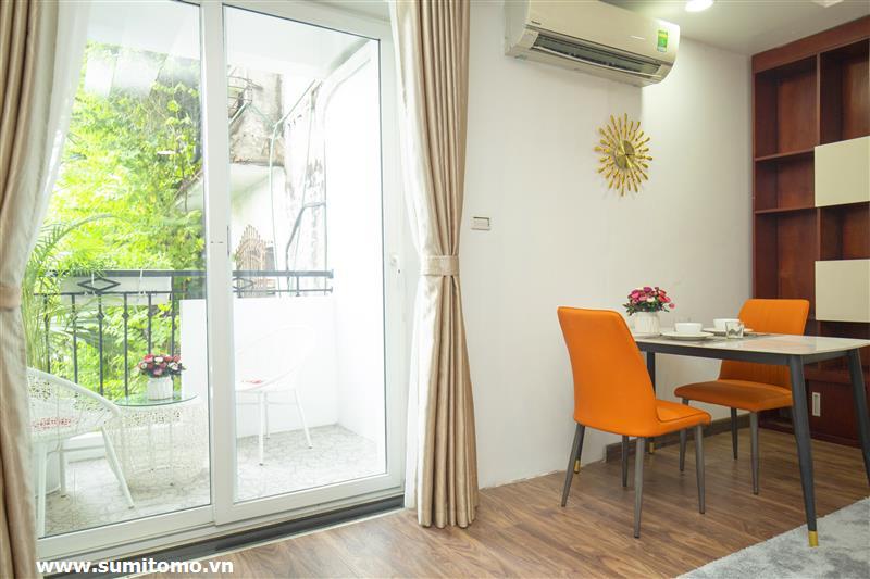 The apartment is fully equipped with furniture, equipment, guests just need to come and stay. In particular, the building also installs modern equipment such as: air purifier, automatic toilet, bathtub, washing machine and dryer in the room, water filtration system and pressure booster for domestic water,