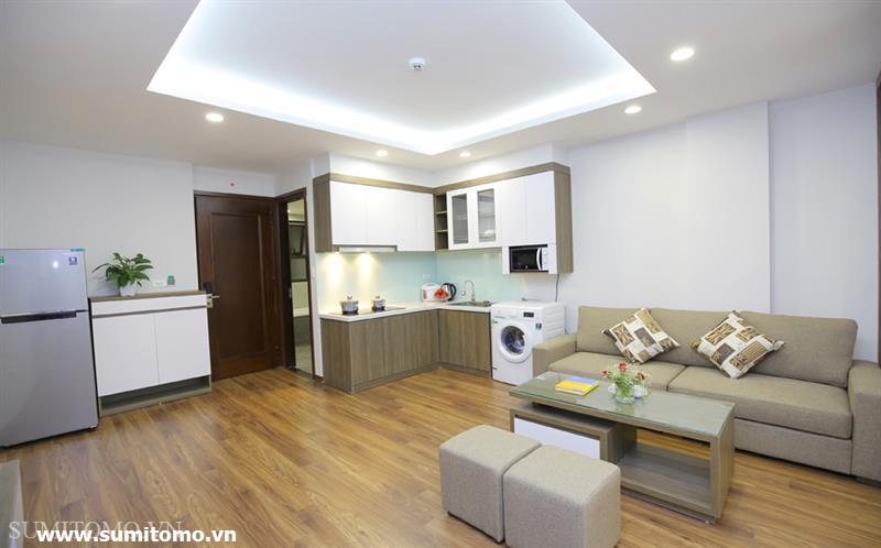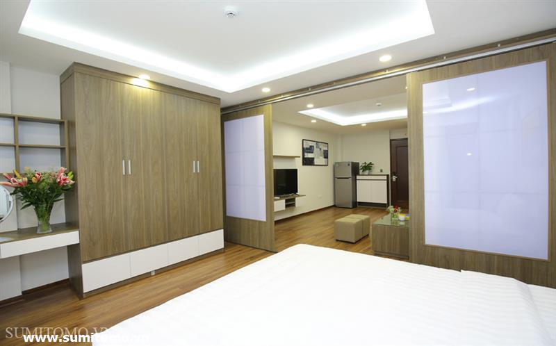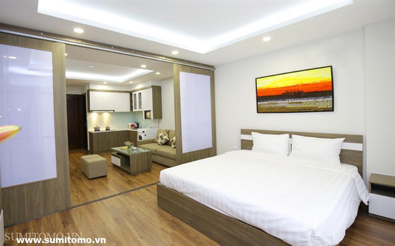 Serviced apartment for rent, studio for Vietnamese guests, reasonable price, nice and small furniture, full furniture and services: internet, TV, laundry cleaning