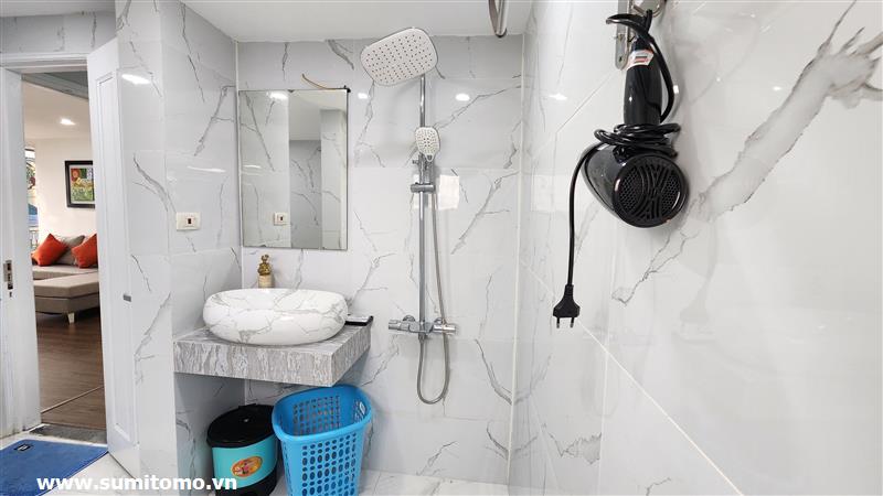 Serviced apartment for rent for long-term at 48/12 Dao Tan (76 Linh Lang) priced from 650.000vnd/night. Sumitomo building for rent to foreigners with 70m2, balcony, 4 open sides, new furniture. The apartments are fully equipped with equipment and necessary equipment for Japanese guests: air purifier, wash-let, washing machine and dry, sauna, bathtub. Guests only bring suitcases to stay. Services includes internet, 16 Japanese TV channels, cleaning and laundry for 5 times a week, security, usage water