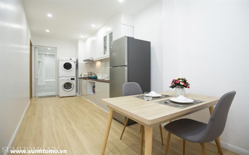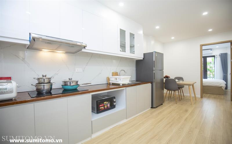 This high-end 2-bedroom serviced apartment is located at No.12, Alley 2, Lane 535 Kim Ma, Ba Dinh District, Hanoi – just a 2-minute walk from Lotte Center, Daewoo Hotel, and Ngoc Khanh Lake. With a spacious layout of 80 square meters, the apartment features 2 bright bedrooms with large windows, a stylish living room with comfortable sofa and smart TV, a fully equipped kitchen with fridge, stove, microwave, and dining table, and a clean, modern bathroom with hot shower. The highlight is a large private balcony that opens to fresh air and natural light, perfect for relaxing or working from home. Fully furnished and move-in ready, the unit includes in-room washing machine, air-conditioning in all rooms, high-speed Wi-Fi, and weekly cleaning service. The apartment is located in a quiet and safe neighborhood, ideal for expats, couples, or small families who want to live close to the city center. Inclusive of internet, cable TV (Japanese & international channels), cleaning 5 times/week, and 24/7 security. Utilities like electricity and water are billed separately. Nearby amenities include Japanese restaurants, supermarkets, cafes, embassies, RMIT Hanoi, and parks. Long-term and short-term leases are both available. Professional English-speaking landlord. Schedule a viewing today.