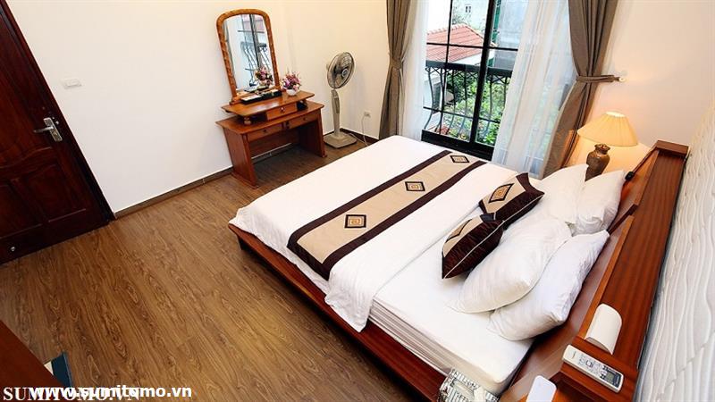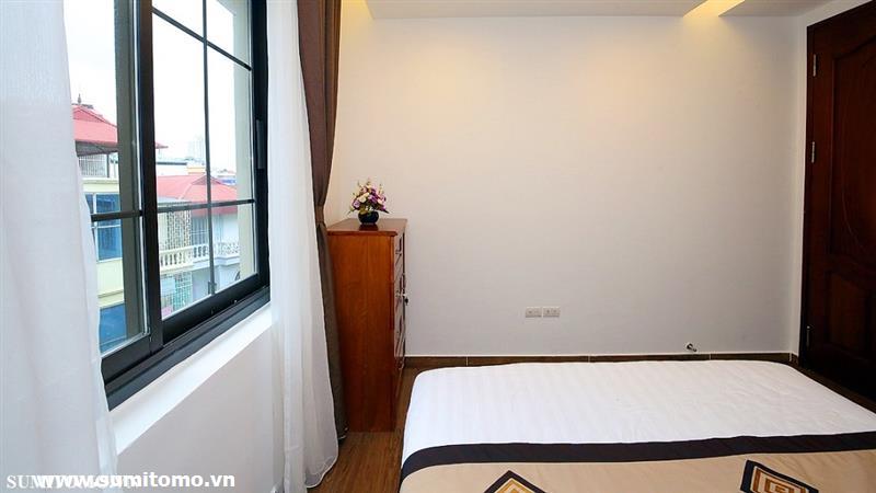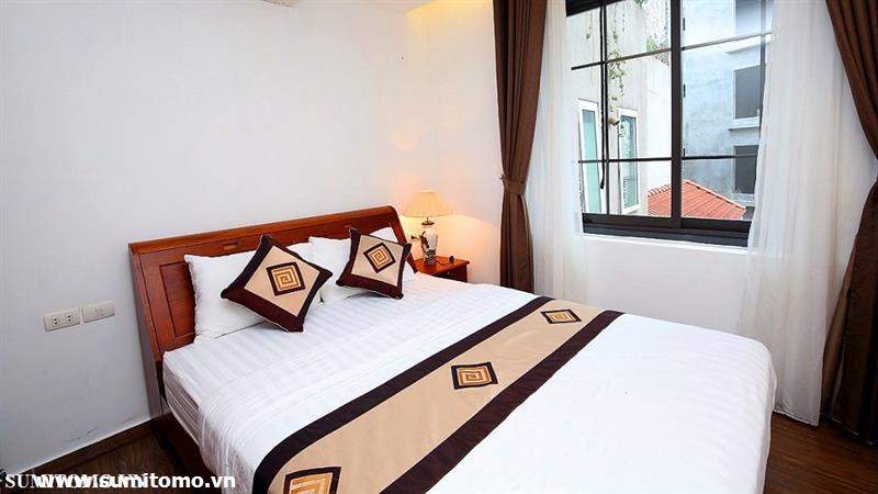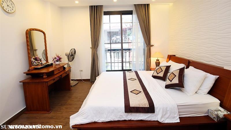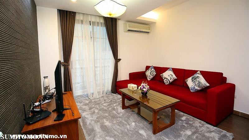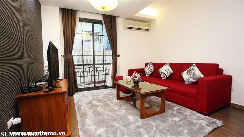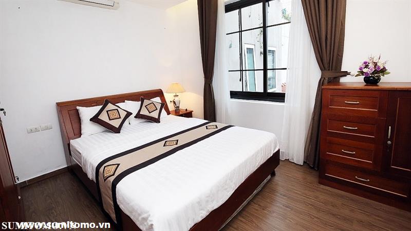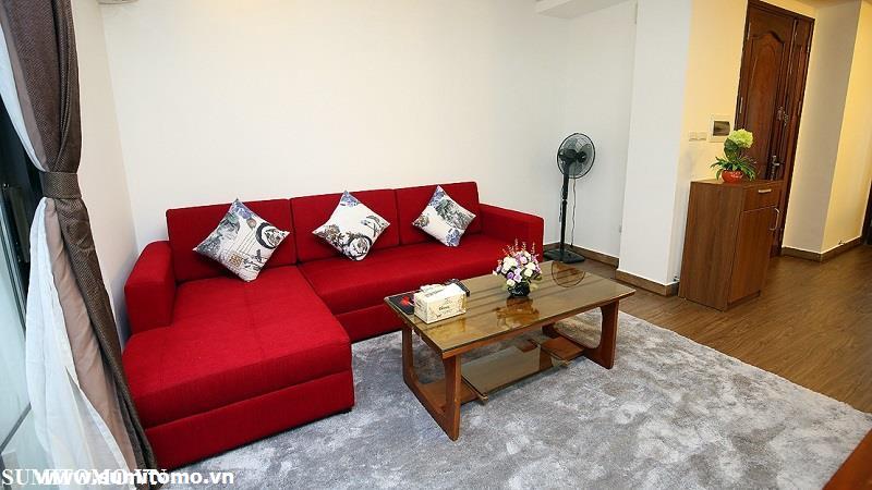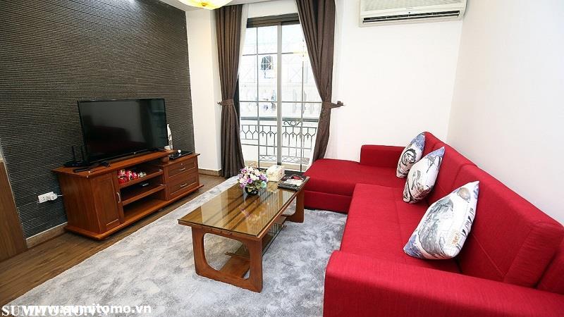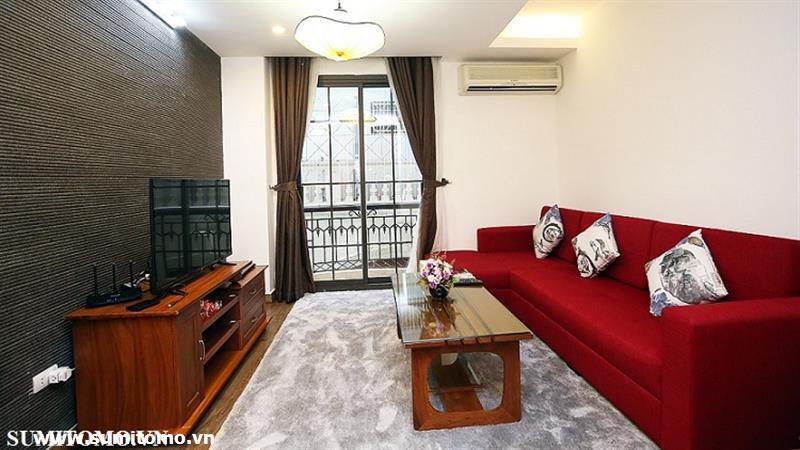 ハノイ・バーディン区ダオタン12番路地、Lotte・日本大使館・Thu Le湖・Daewooホテルまで徒歩1〜2分の好立地。90㎡・2ベッドルームのモダンなサービスアパートを月額1,000USD〜で賃貸中。全室に広いバルコニーがあり、明るく開放的な眺望。家具・家電完備で、スーツケース一つで即入居可能。インターネット、テレビ、週1回の清掃サービスが賃料に含まれています。徒歩圏内にTomibunスーパー、日本食レストラン、Linh Lang市場、サロン、ランドリーなど生活に便利な施設多数。車での送迎やタクシー利用にも便利な立地です。