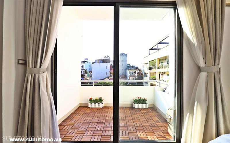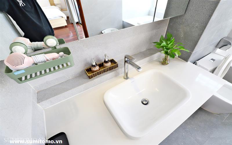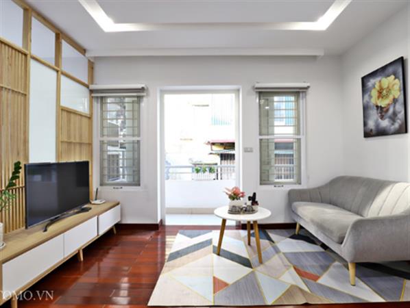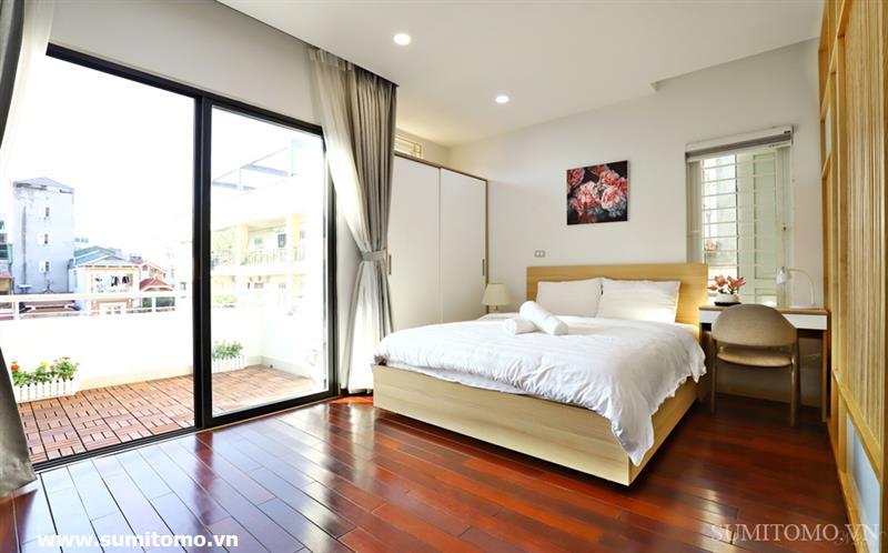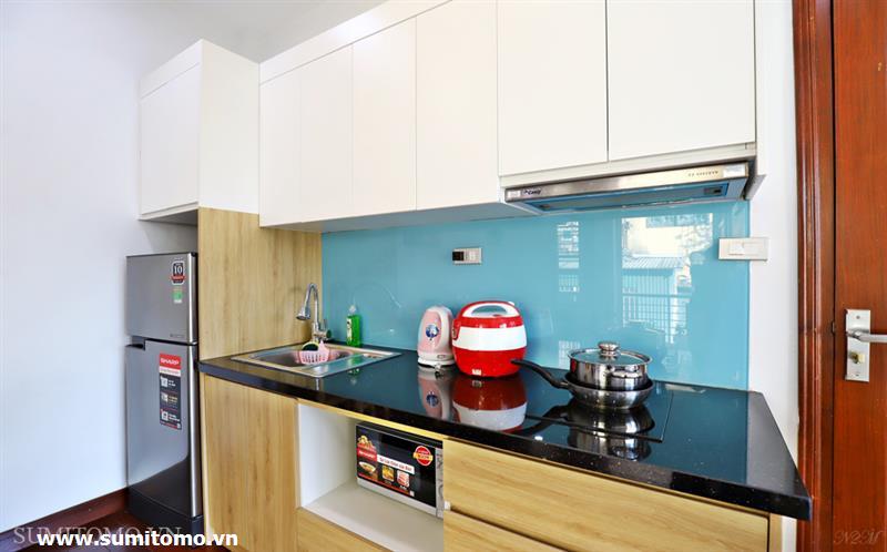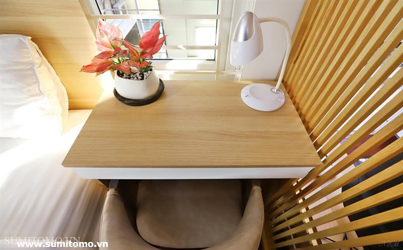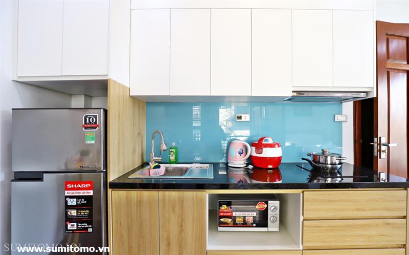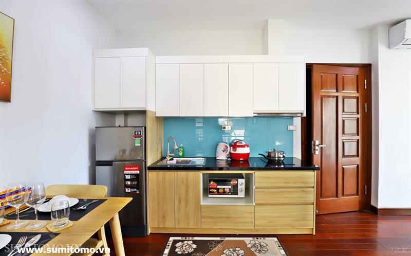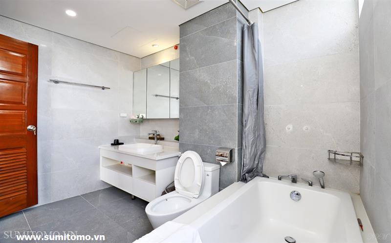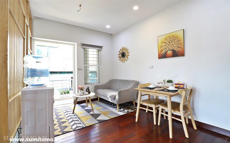 スミトモビル(Sumitomo Building)にて、Linh Lang通りの1ベッドルームサービスアパートを賃貸中。モダンで明るく温かみのあるデザインで、新しい家具・家電をフル完備しており、スーツケース一つでご入居いただけます。自動洗浄トイレ、専用洗濯乾燥機、バスタブ、55インチスマートTV(日本語チャンネル16局)など設備も充実しています。