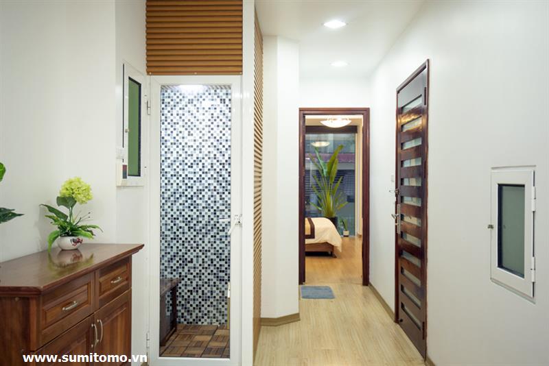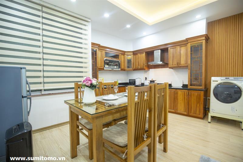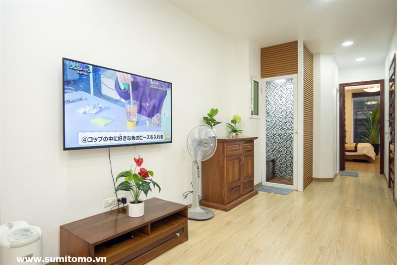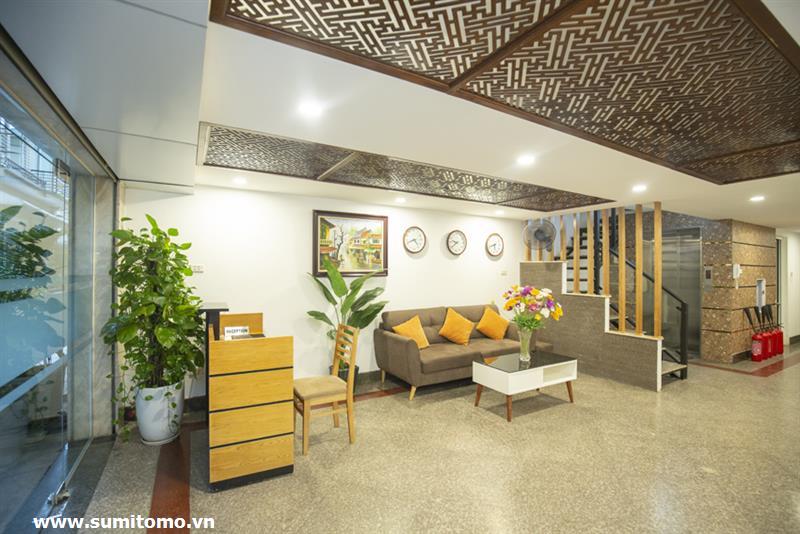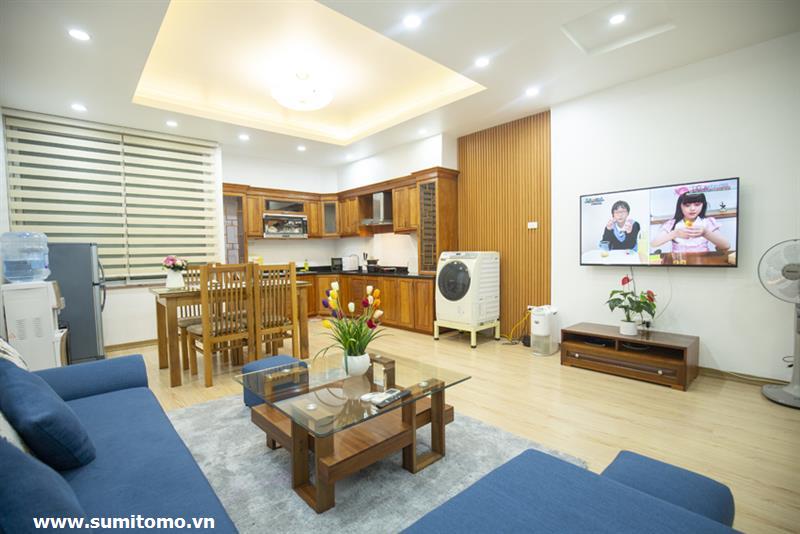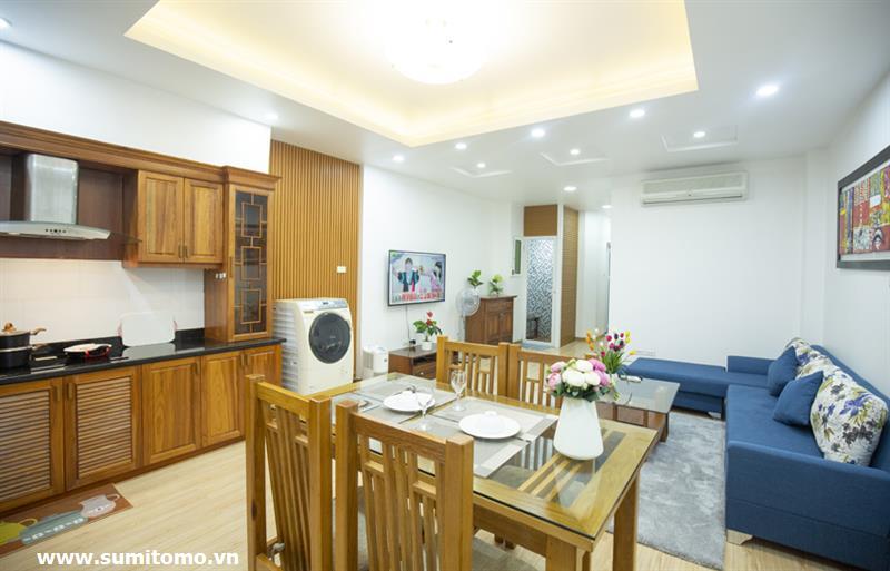 Toà nhà Sumitomo cho thuê căn hộ dịch vụ 1 ngủ 85m² tại ngõ 535 Kim Mã giá thuê từ 700 - 800usdtháng. Căn hộ được thiết kế theo phong cách hiện đại, các phòng đều thoáng, sáng, nằm giữa hồ Thủ Lệ, hồ Ngọc Khánh. Các trang thiết bị được setup đầy đủ từ khăn tắm,xoong nồi bát đĩa, có máy giặt sấy riêng trong phòng khách chỉ xách vali đến ở.