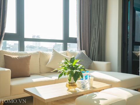 Căn hộ dịch vụ phố Linh Lang cho thuê căn studio 65m2, thoáng có ban công cả phòng khách và phòng ngủ. Giá thuê căn hộ từ 600usd-700usd/tháng.