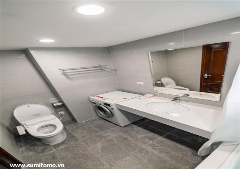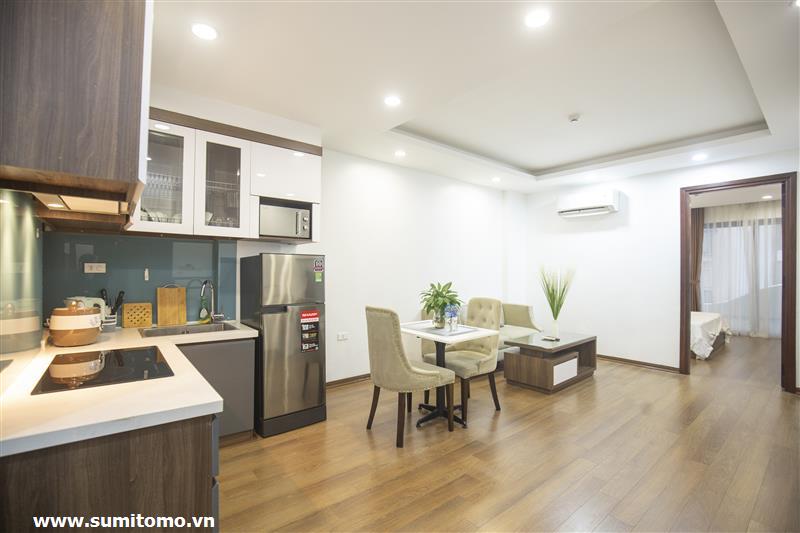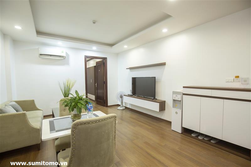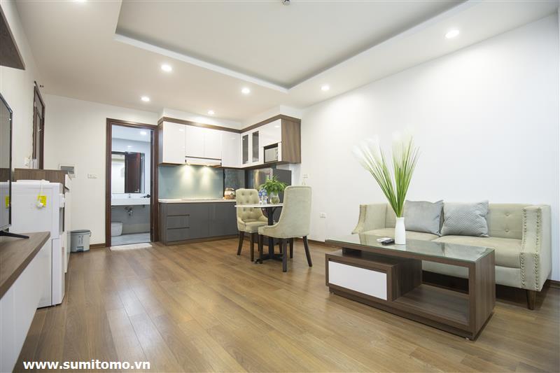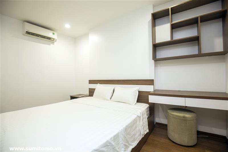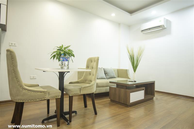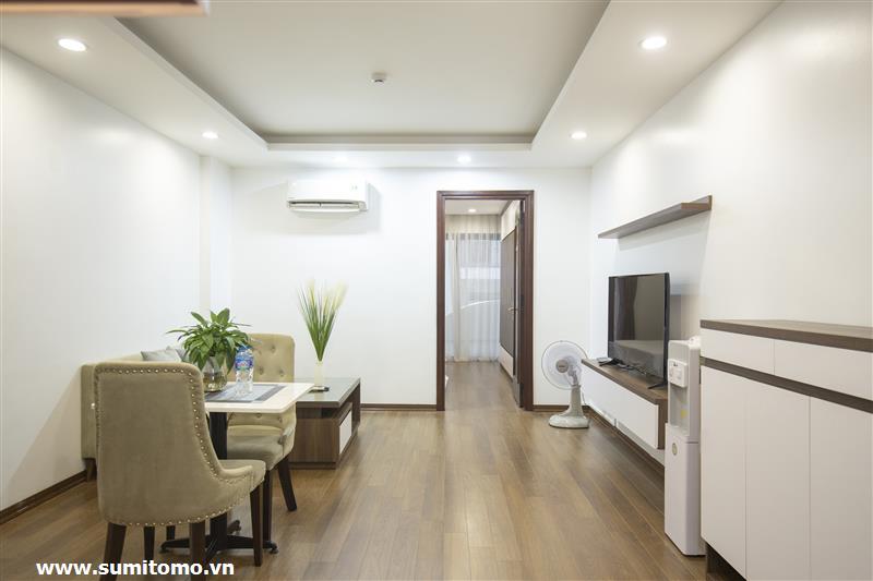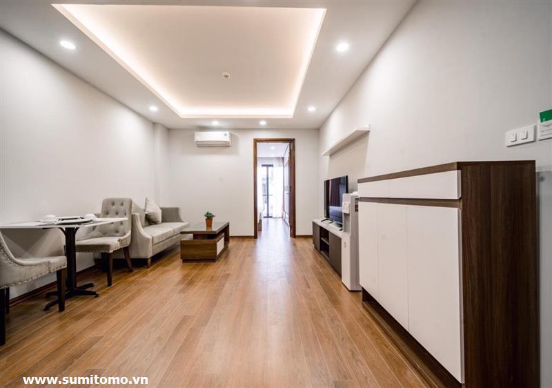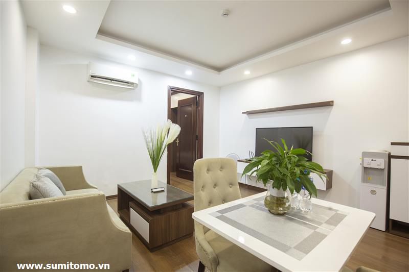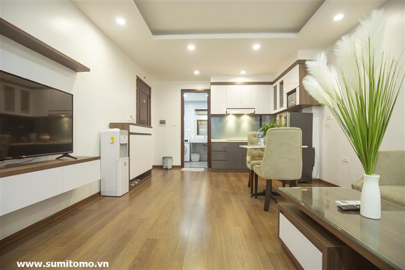 Tòa nhà Sumitomo cho thuê căn hộ dịch vụ 1 ngủ rộng 55m2 phố 551 Kim Mã, giá thuê từ 750 usd/tháng cho khách nhật, khách nước ngoài. Căn hộ được thiết kế theo phong cách hiện đại, rộng nhất khu vực Ba Đình, đầy đủ các trang thiết bị cho khách nhật: Máy lọc không khí, máy hút ẩm, bồn tắm. bình nóng lạnh 130l, máy giặt sấy, bồn cầu tự động…..