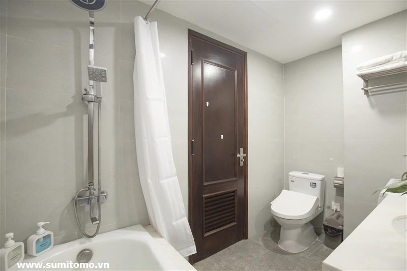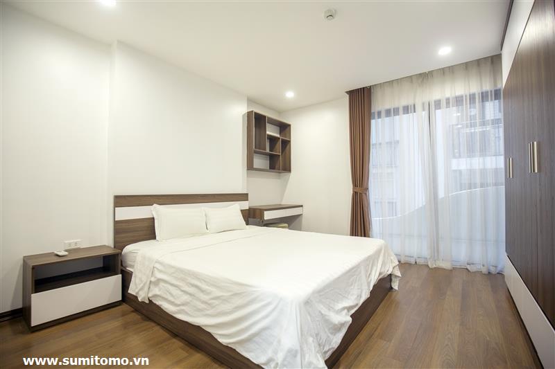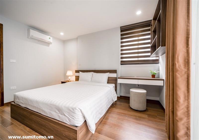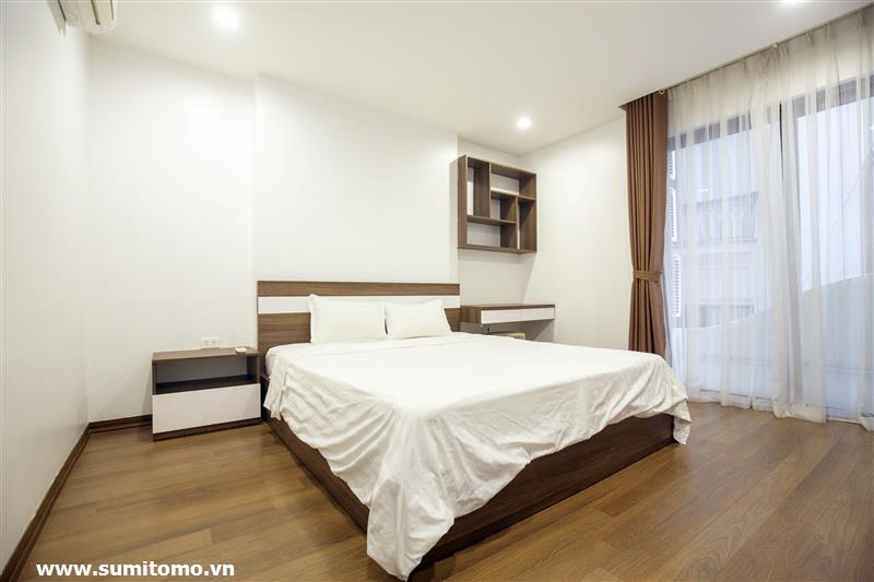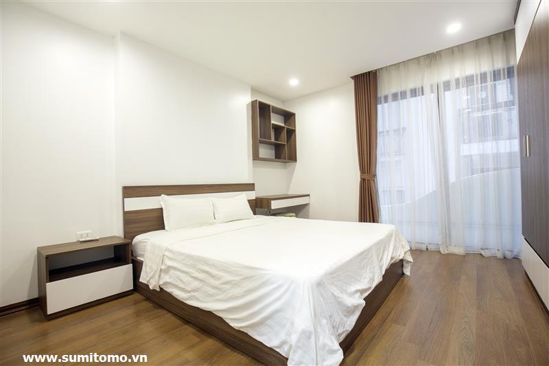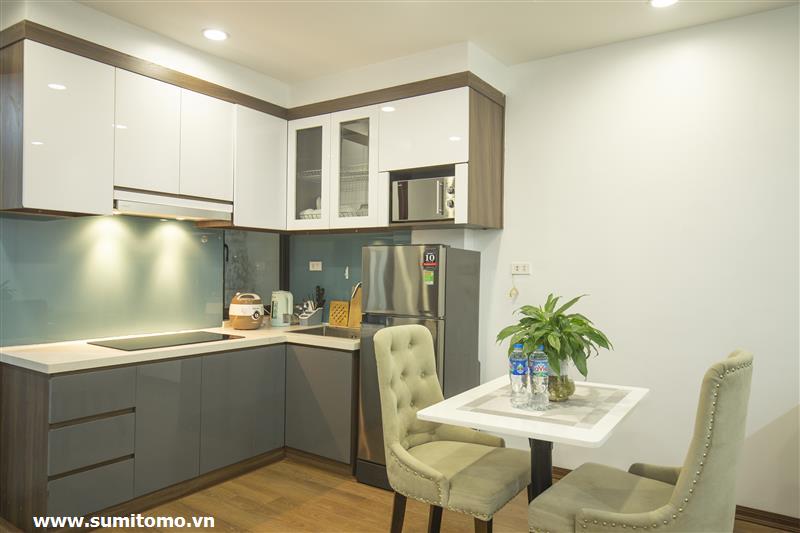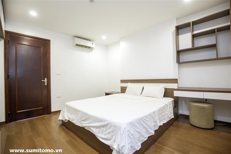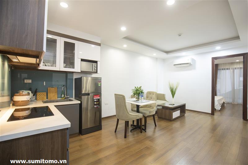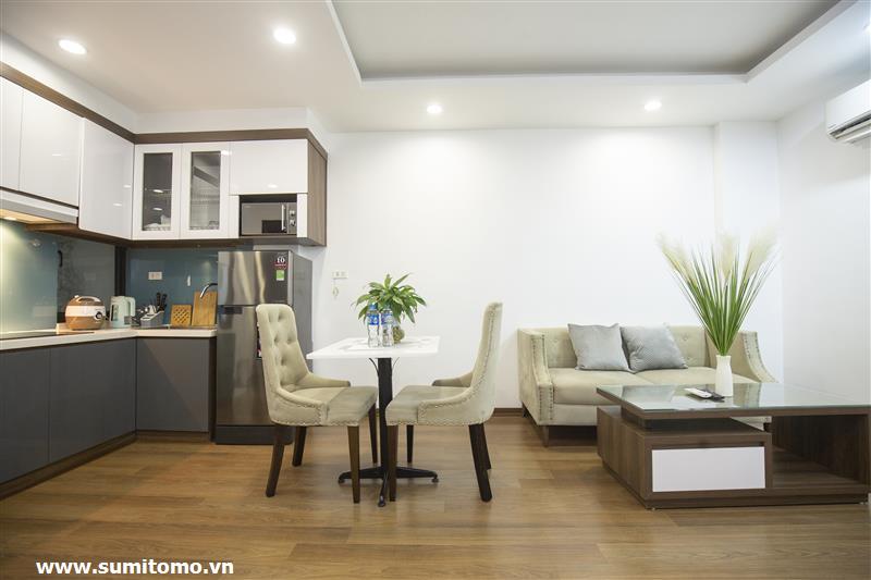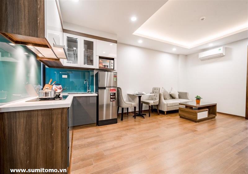Tòa nhà Sumitomo cho thuê căn hộ dịch vụ 1 ngủ rộng 55m2 phố 551 Kim Mã, giá thuê từ 750 usd/tháng cho khách nhật, khách nước ngoài. Căn hộ được thiết kế theo phong cách hiện đại, rộng nhất khu vực Ba Đình, đầy đủ các trang thiết bị cho khách nhật: Máy lọc không khí, máy hút ẩm, bồn tắm. bình nóng lạnh 130l, máy giặt sấy, bồn cầu tự động…..