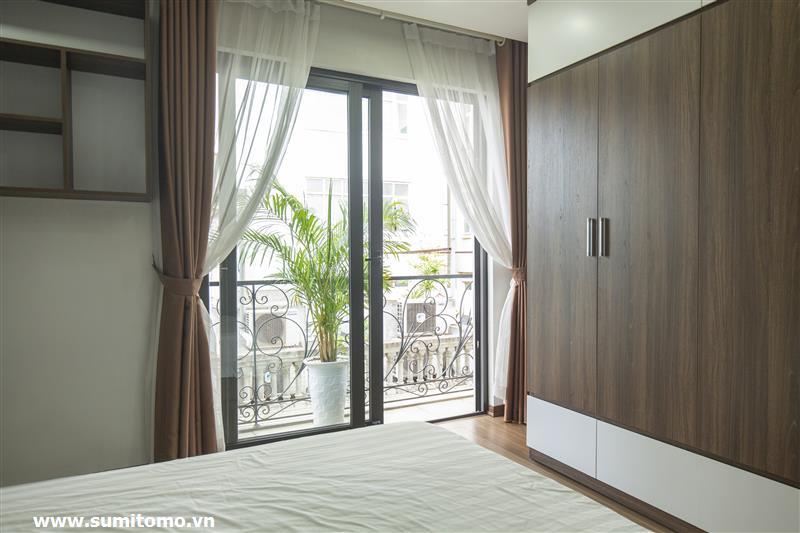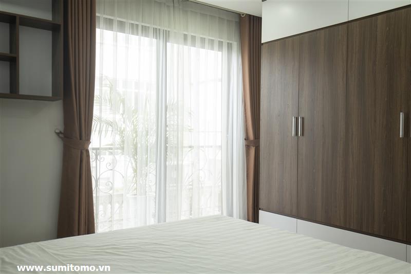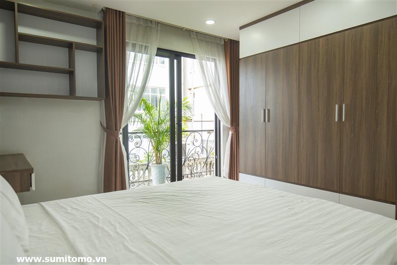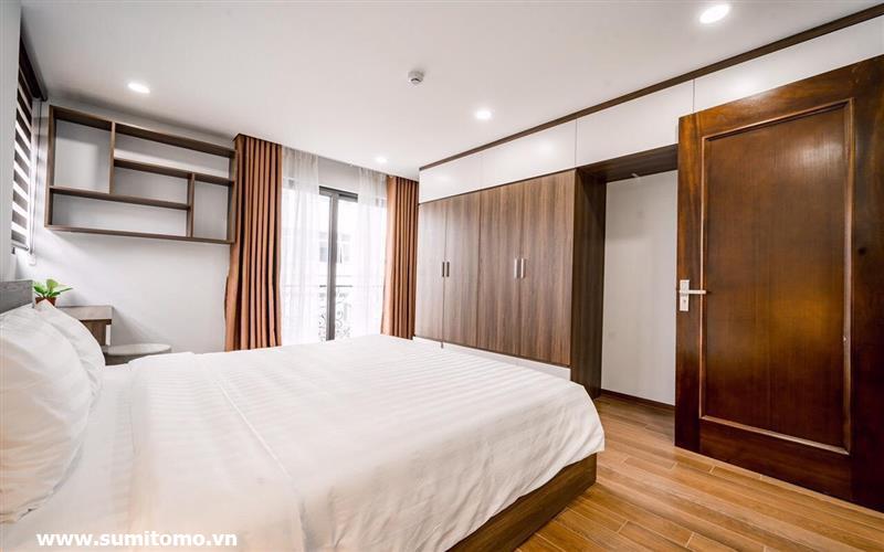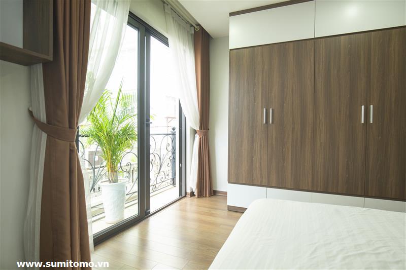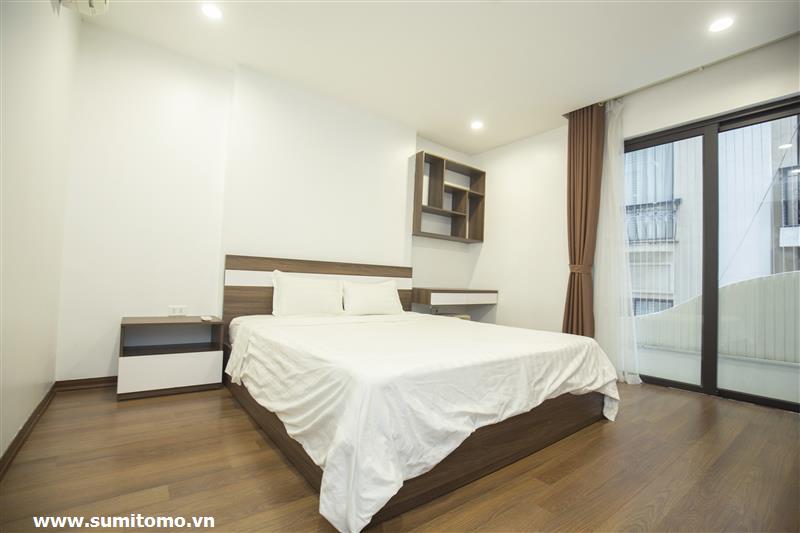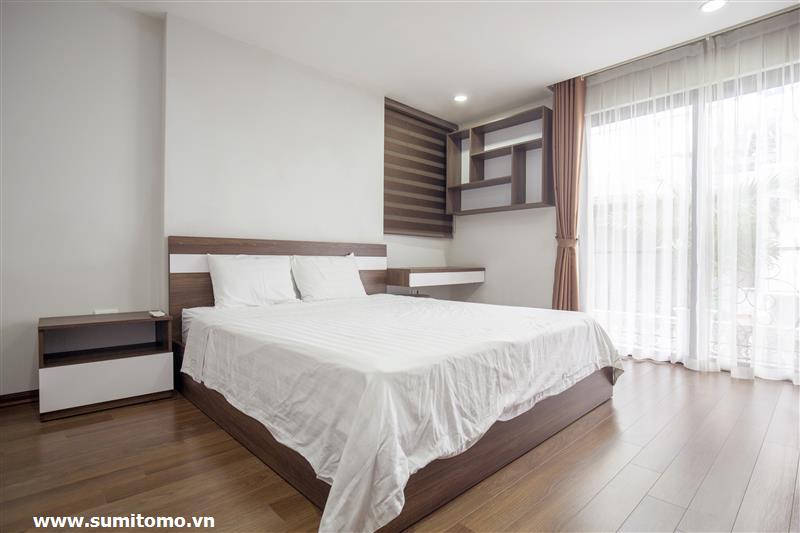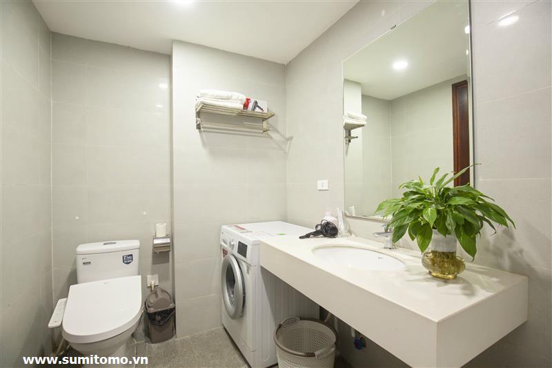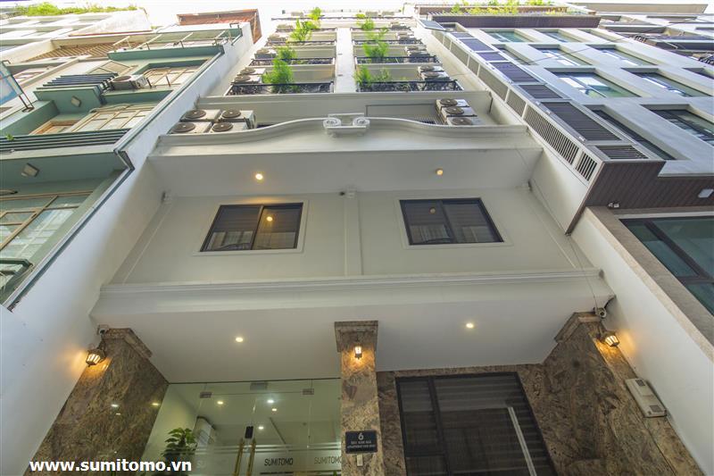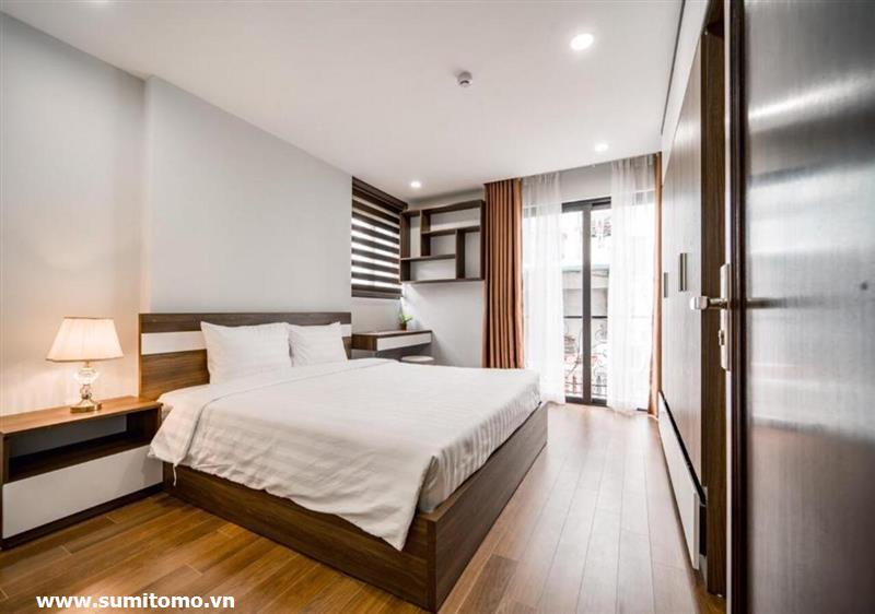 Tòa nhà Sumitomo cho thuê căn hộ dịch vụ 1 ngủ rộng 55m2 phố 551 Kim Mã, giá thuê từ 750 usd/tháng cho khách nhật, khách nước ngoài. Căn hộ được thiết kế theo phong cách hiện đại, rộng nhất khu vực Ba Đình, đầy đủ các trang thiết bị cho khách nhật: Máy lọc không khí, máy hút ẩm, bồn tắm. bình nóng lạnh 130l, máy giặt sấy, bồn cầu tự động…..