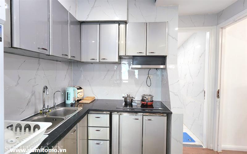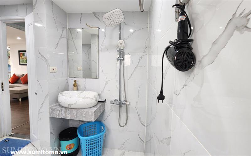 Toà nhà Sumitomo cho thuê căn hộ dịch vụ diện tích 55m2, 1 phòng ngủ tại phố 48/12 Đào Tấn giá thuê từ 700.000vnđ/1đêm. Căn hộ được thiết kế theo phong cách hiện đại, các phòng đều thoáng, sáng, nằm giữa hồ Thủ Lệ, hồ Ngọc Khánh. Các trang thiết bị được setup đầy đủ từ khăn tắm,đủ nồi chảo bát đĩa, có máy giặt sấy riêng trong phòng khách chỉ xách vali đến ở.