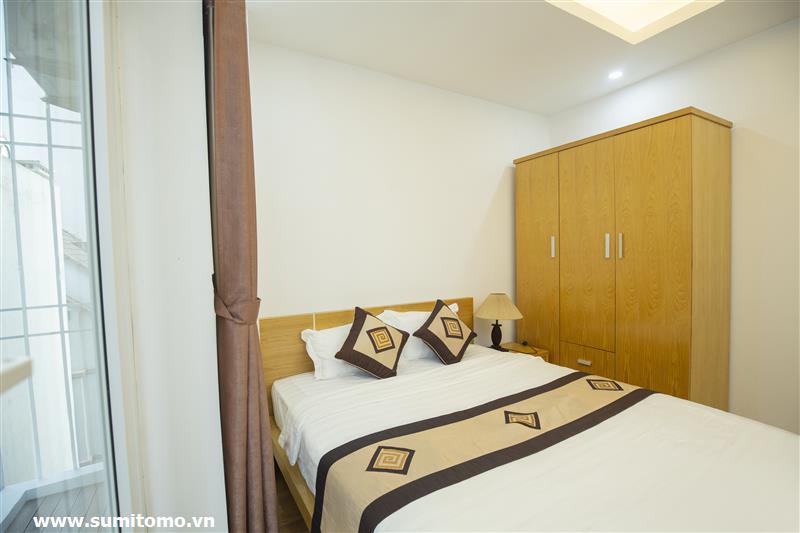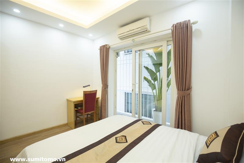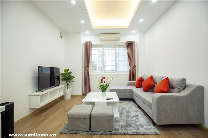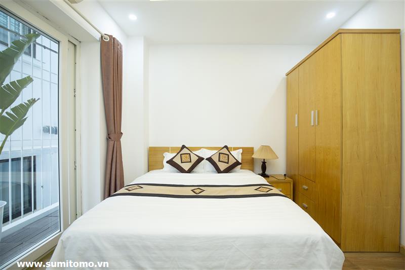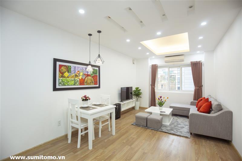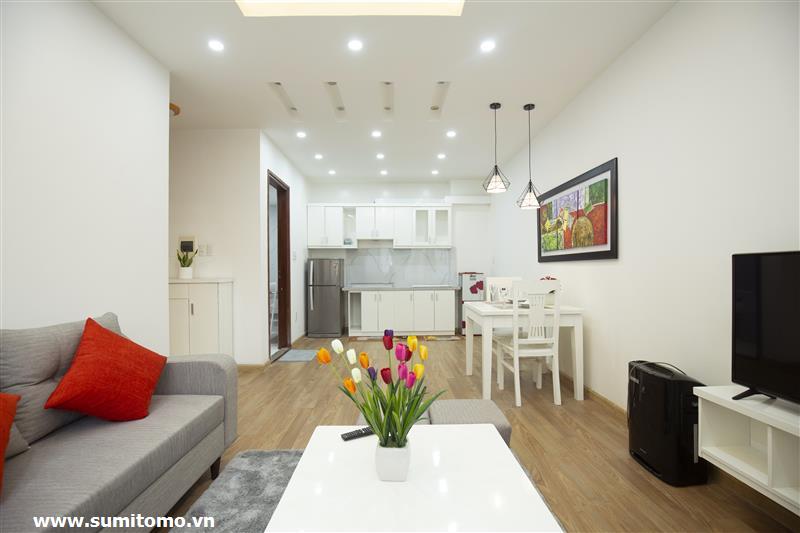 Toà nhà Sumitomo cho thuê căn hộ dịch vụ diện tích 50, 1 phòng ngủ tại phố Đào Tấn Căn hộ được thiết kế theo phong cách hiện đại, các phòng đều thoáng, sáng, nằm giữa hồ Thủ Lệ, hồ Ngọc Khánh. Các trang thiết bị được setup đầy đủ từ khăn tắm,đủ nồi chảo bát đĩa, có máy giặt sấy riêng trong phòng khách chỉ xách vali đến ở.