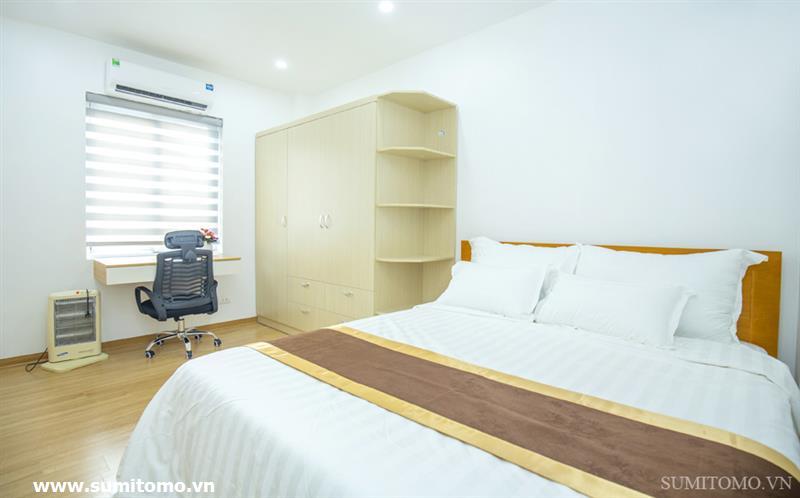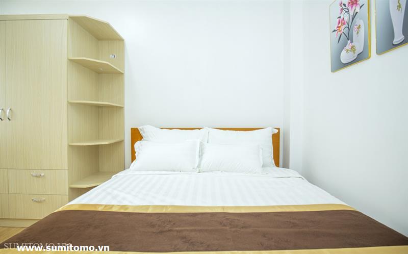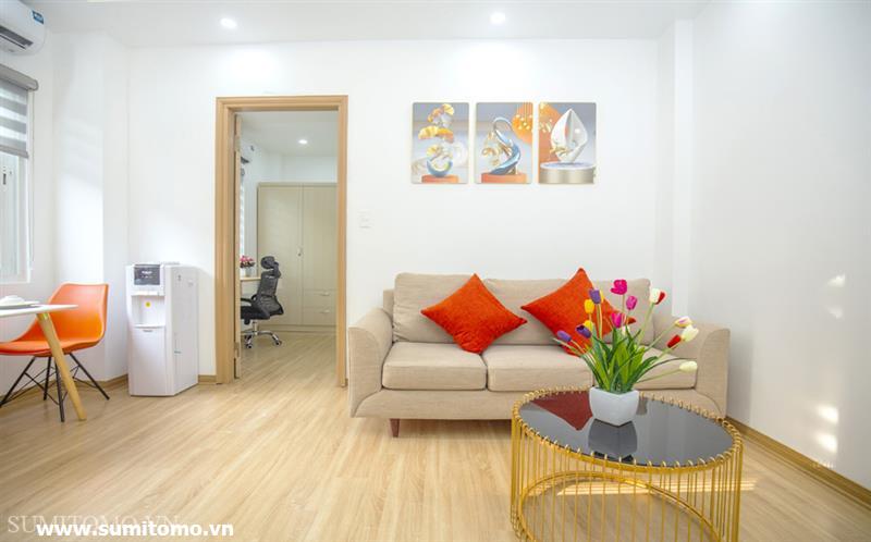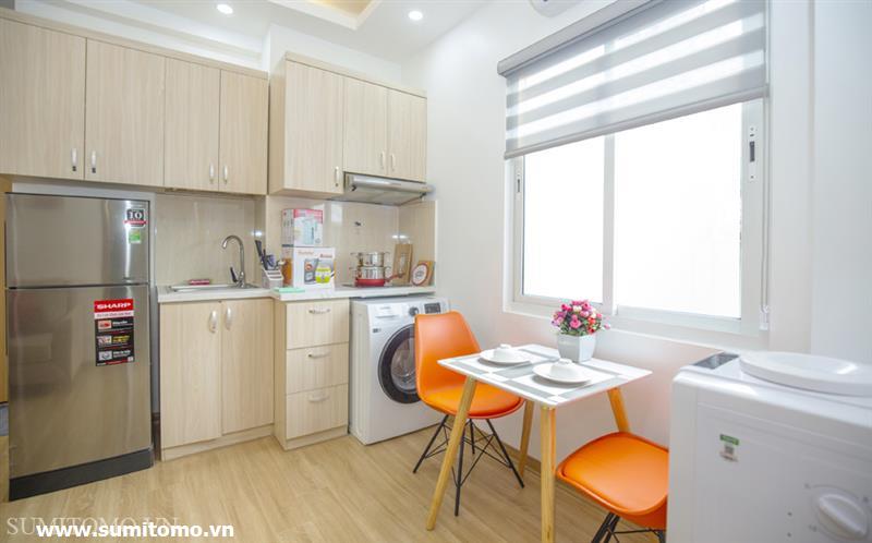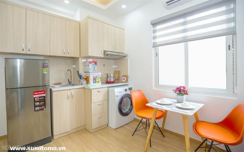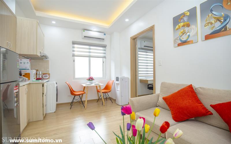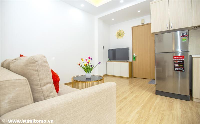 Tòa nhà Sumitomo có căn hộ dịch vụ cho thuê 1 ngủ tại phố Linh Lang, giá 600.000vnd/1đêm. Căn hộ nằm ở phố Linh Lang, thiết kế nội thất mới theo phong cách hiện đại, đầy đủ đồ đã,khách chỉ xách vali đến ở. Dịch vụ: Internet,truyền hình nhật 16 kênh, dọn dẹp giặt là quần áo tuần 5 buổi, nước sinh hoạt,bảo vệ 24h.