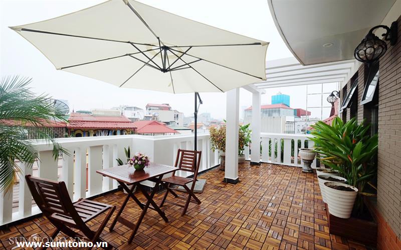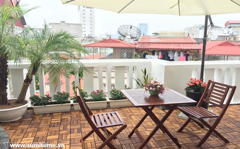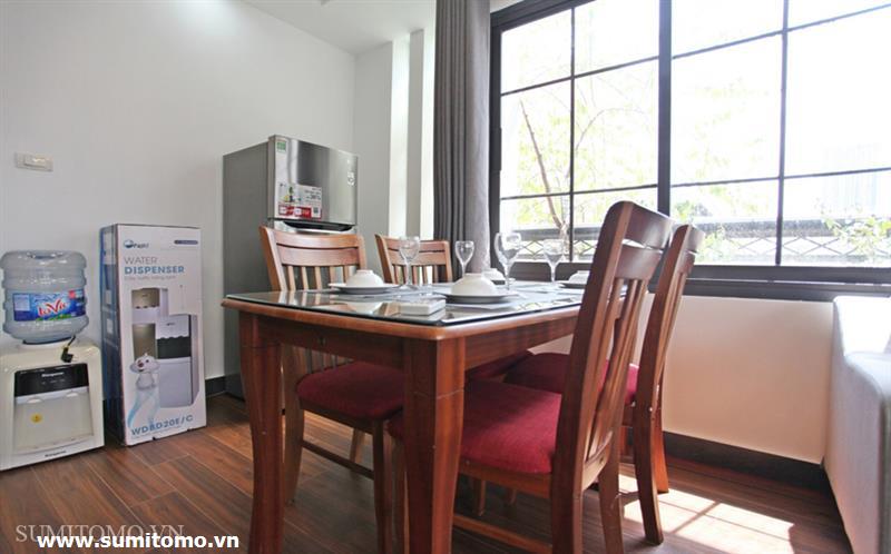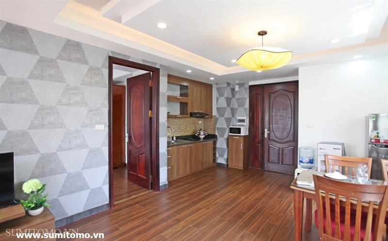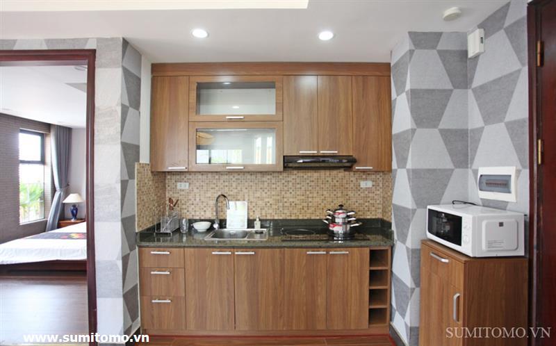 Toà nhà Sumitomo cho thuê căn hộ dịch vụ diện tích 70, 1 phòng ngủ tại phố Đào Tấn giá thuê từ 1000 USD/Tháng. Căn hộ được thiết kế theo phong cách hiện đại, các phòng đều thoáng, sáng, nằm giữa hồ Thủ Lệ, hồ Ngọc Khánh. Các trang thiết bị được setup đầy đủ từ khăn tắm,đủ nồi chảo bát đĩa, có máy giặt sấy riêng trong phòng khách chỉ xách vali đến ở.