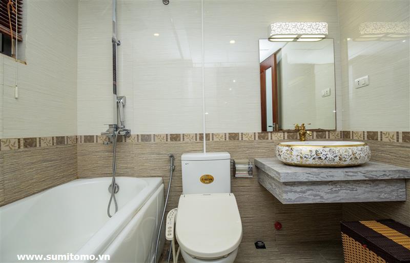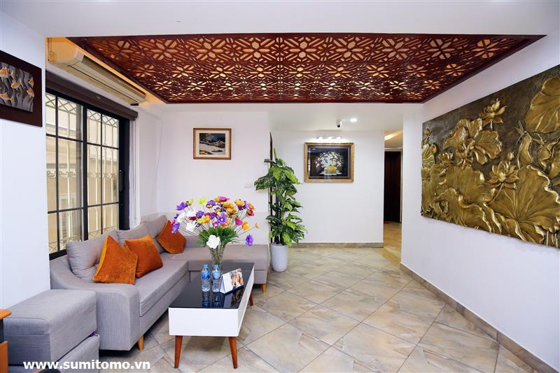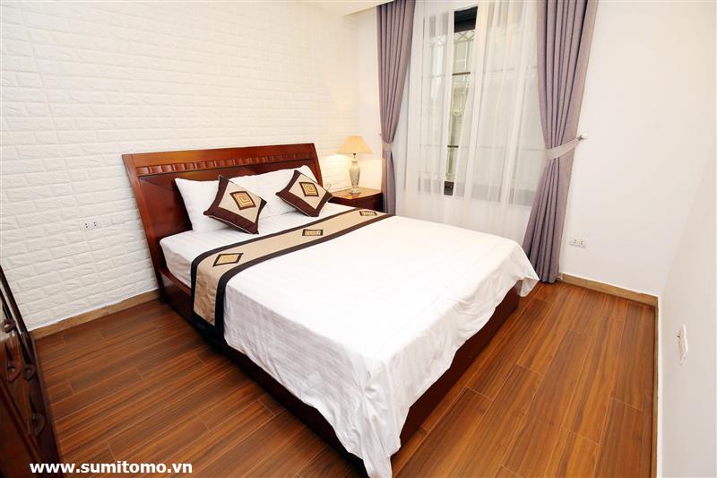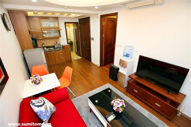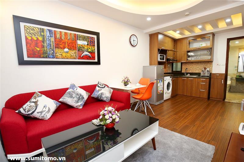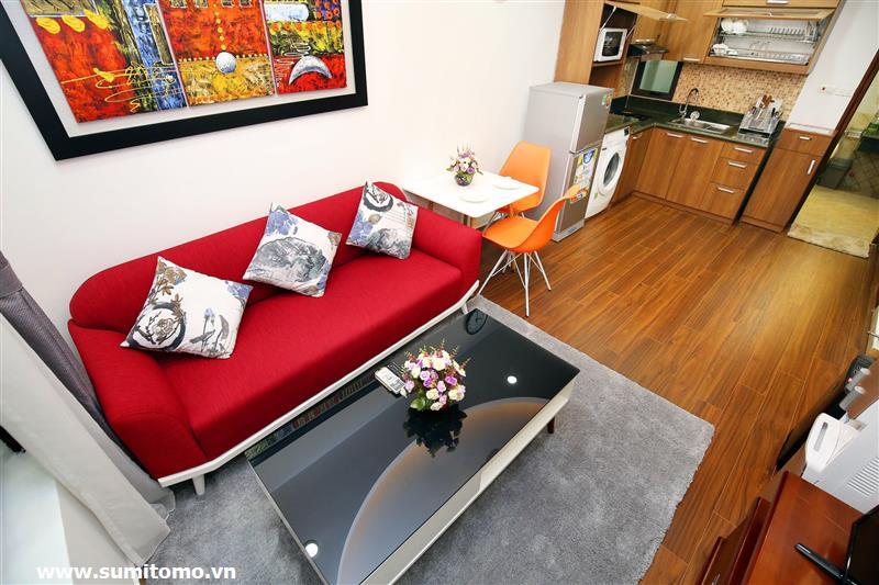Toà nhà Sumitomo cho thuê căn hộ dịch vụ diện tích 50, 1 phòng ngủ tại phố Đào Tấn Căn hộ được thiết kế theo phong cách hiện đại, các phòng đều thoáng, sáng, nằm giữa hồ Thủ Lệ, hồ Ngọc Khánh. Các trang thiết bị được setup đầy đủ từ khăn tắm,đủ nồi chảo bát đĩa, có máy giặt sấy riêng trong phòng khách chỉ xách vali đến ở.