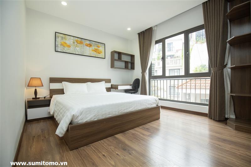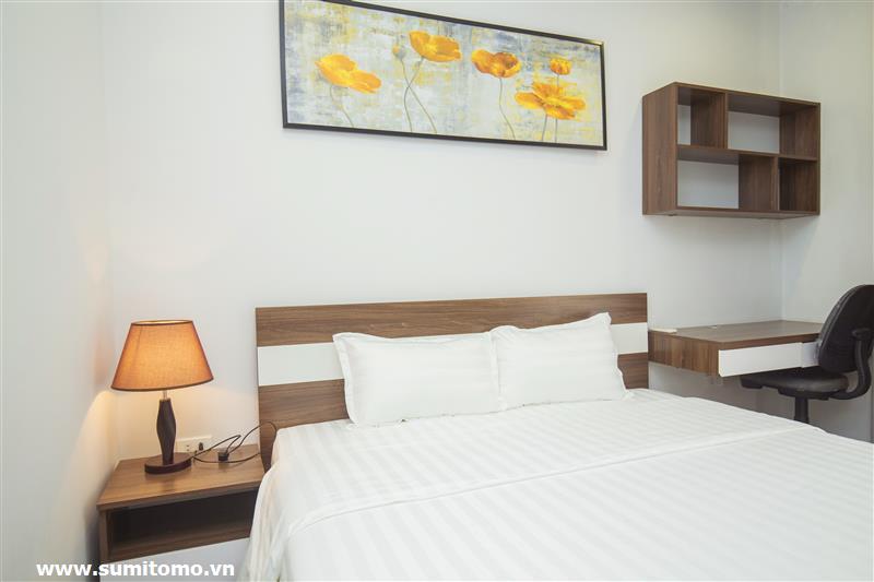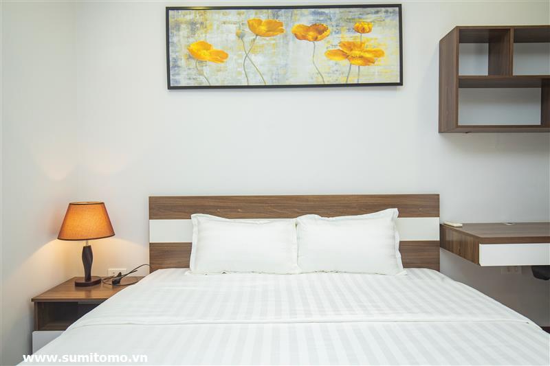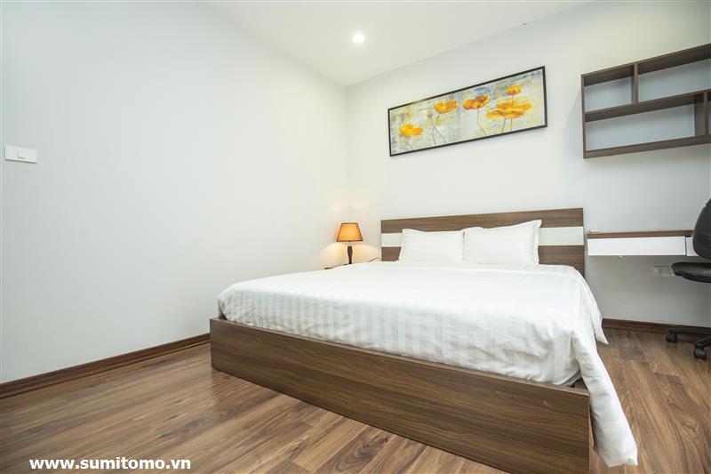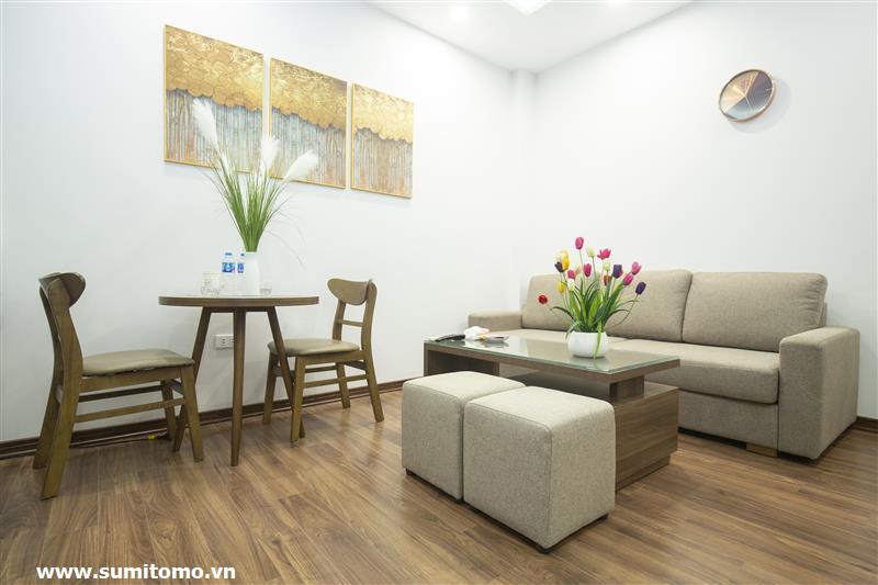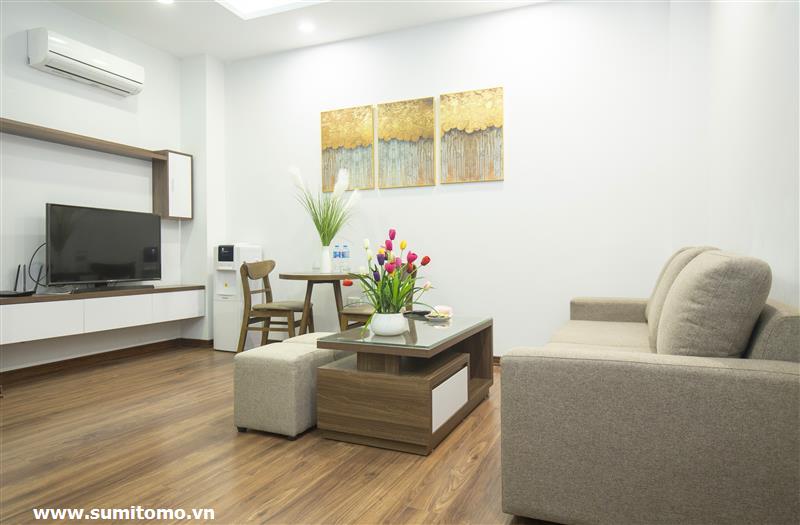 Toà nhà Sumitomo cho thuê căn hộ dịch vụ diện tích 50, 1 phòng ngủ tại phố Đào Tấn Căn hộ được thiết kế theo phong cách hiện đại, các phòng đều thoáng, sáng, nằm giữa hồ Thủ Lệ, hồ Ngọc Khánh. Các trang thiết bị được setup đầy đủ từ khăn tắm,đủ nồi chảo bát đĩa, có máy giặt sấy riêng trong phòng khách chỉ xách vali đến ở.