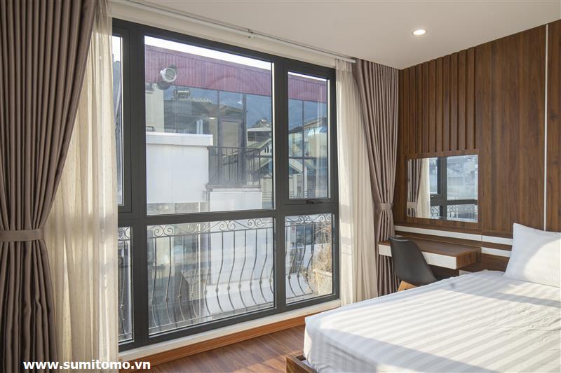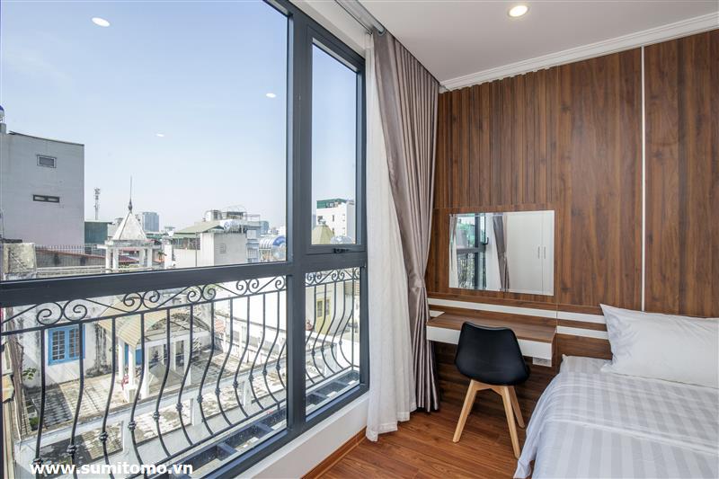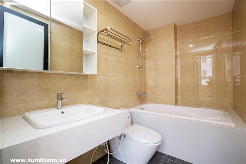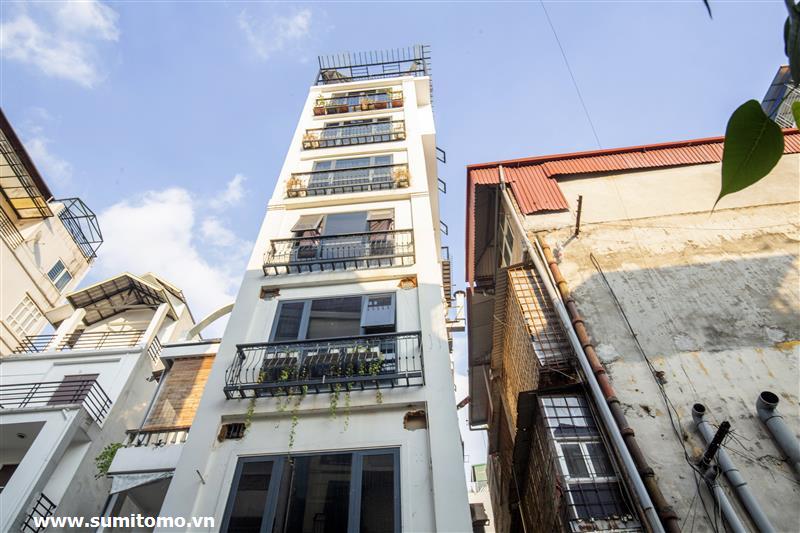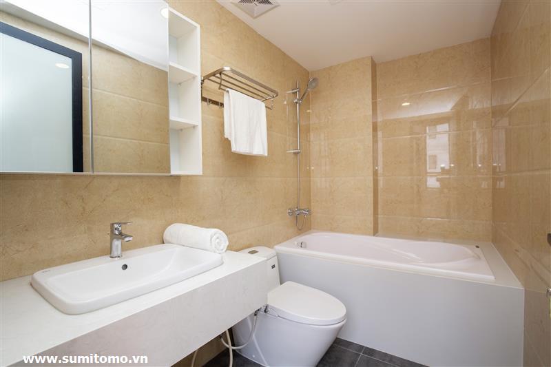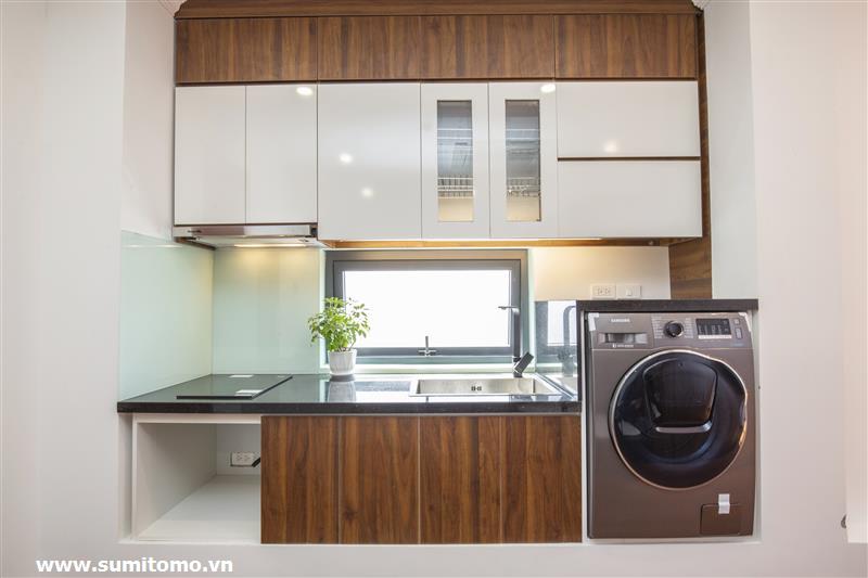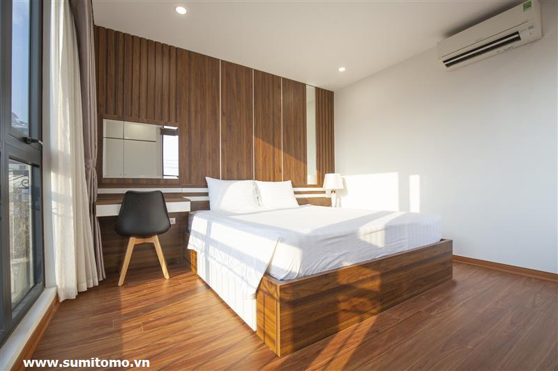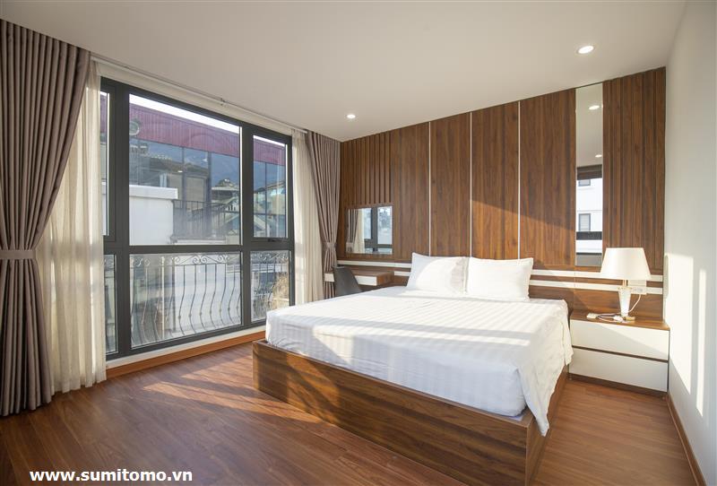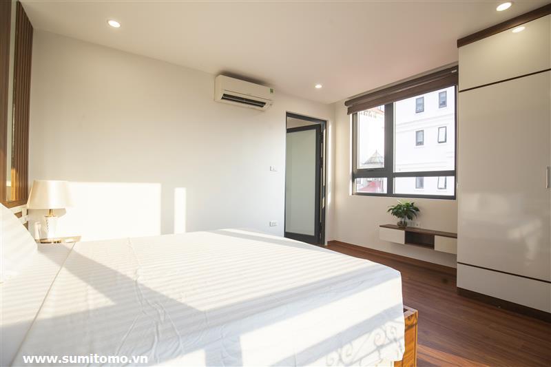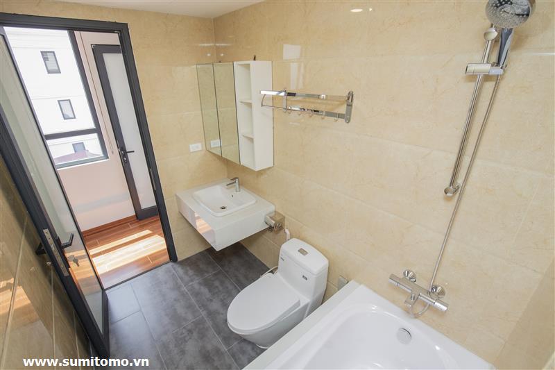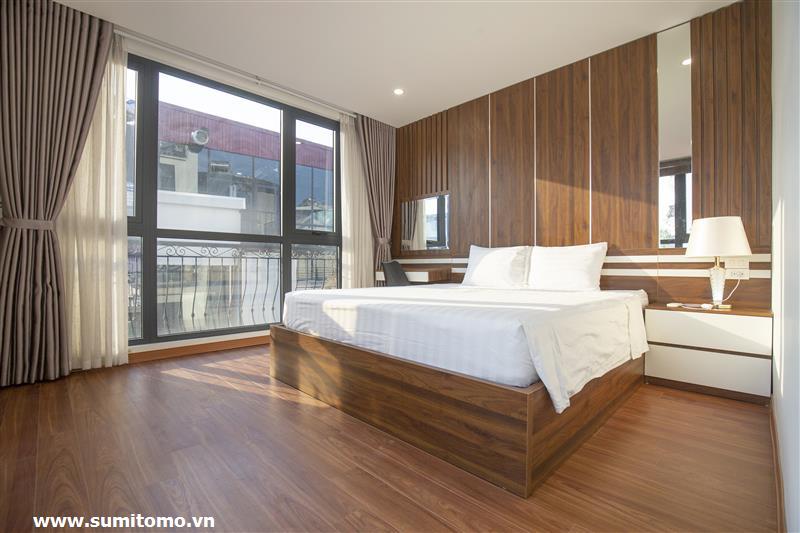 Toà nhà Sumitomo cho thuê căn hộ dịch vụ diện tích 50, 1 phòng ngủ tại phố Đào Tấn giá thuê từ 700 USD/Tháng. Căn hộ được thiết kế theo phong cách hiện đại, các phòng đều thoáng, sáng, nằm giữa hồ Thủ Lệ, hồ Ngọc Khánh. Các trang thiết bị được setup đầy đủ từ khăn tắm,đủ nồi chảo bát đĩa, có máy giặt sấy riêng trong phòng khách chỉ xách vali đến ở.